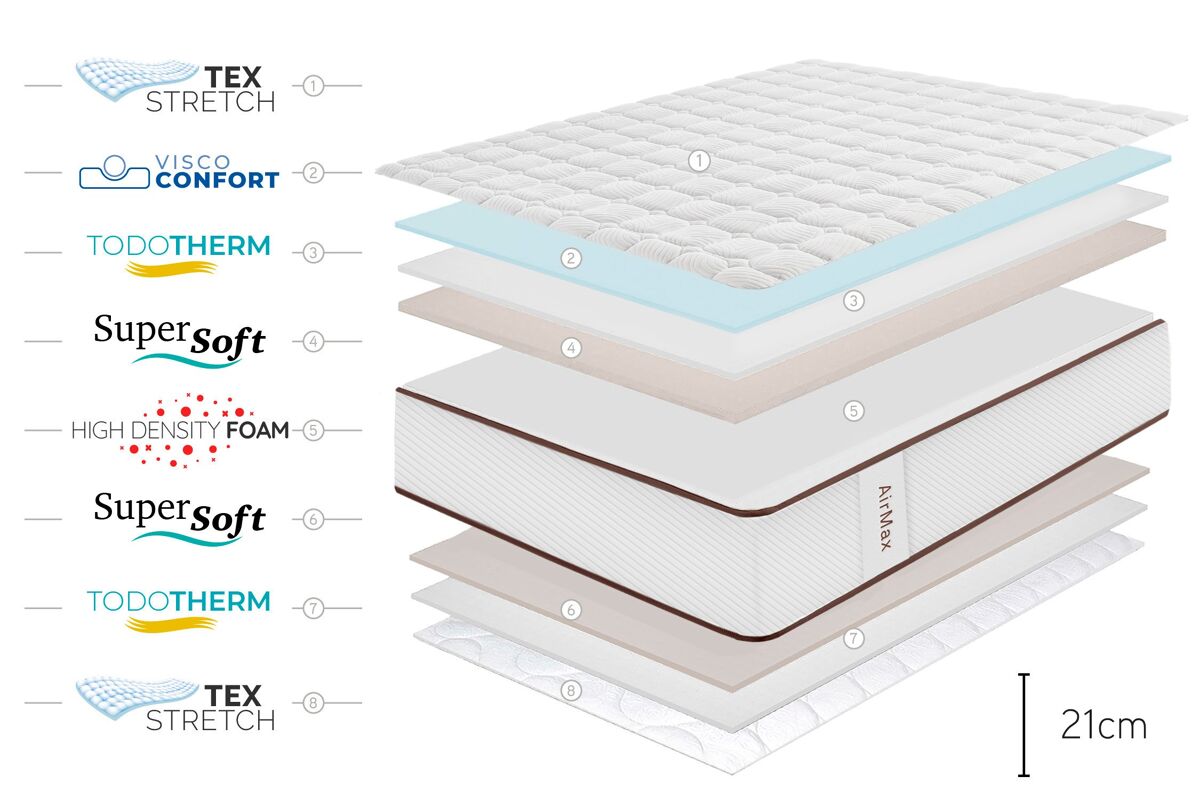 O colchão Air Max possui múltiplas zonas de descanso independentes, que permitem uma distribuição perfeita do peso, proporcionando assim uma adaptabilidade ideal, sem pontos de pressão.