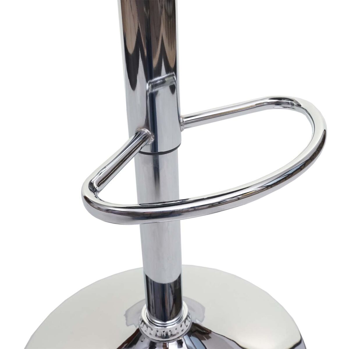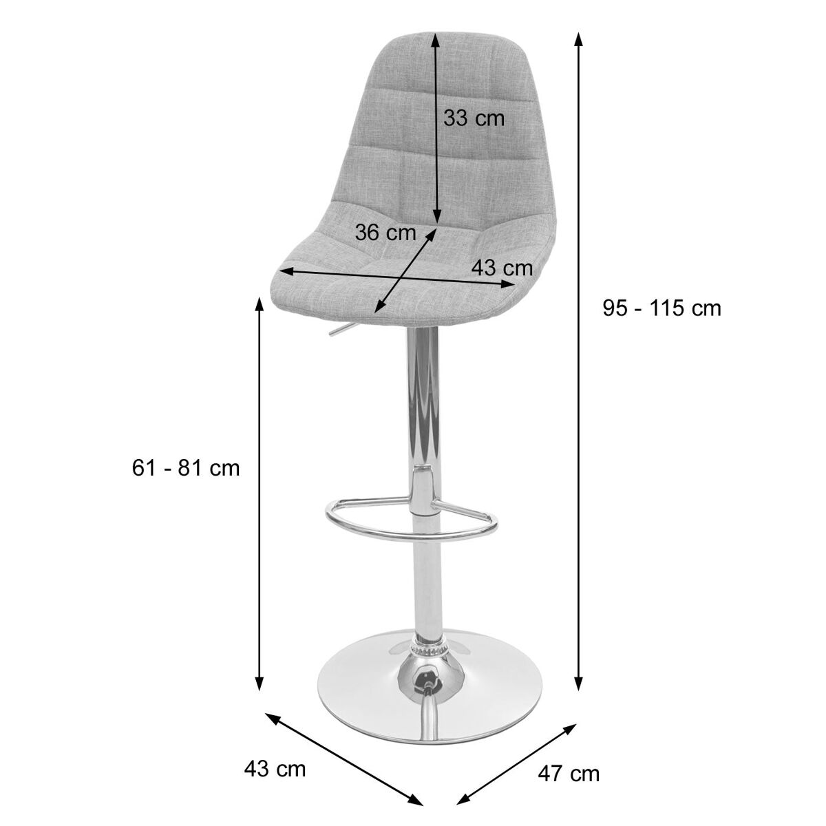 2 bancos de bar com cadeira alta em base de tecido creme cinza e estrutura de aço cromado