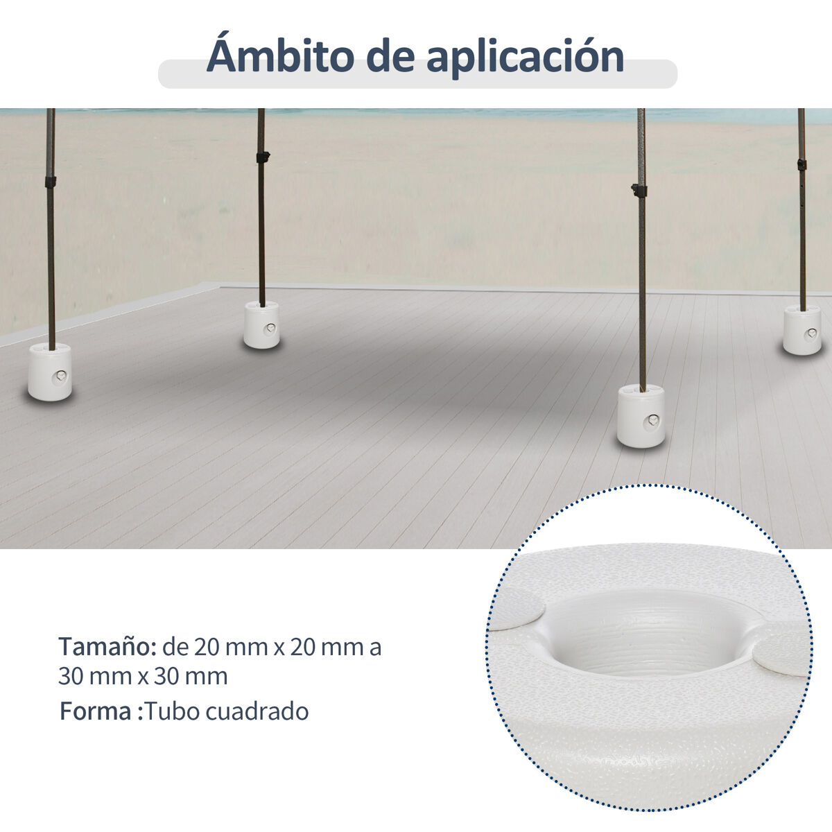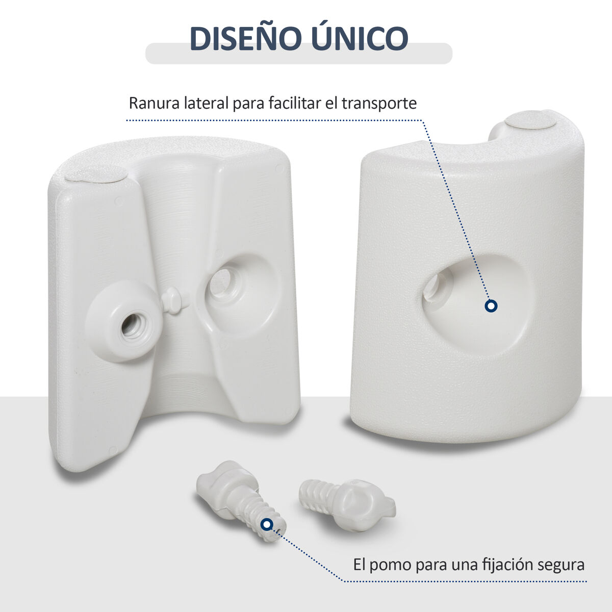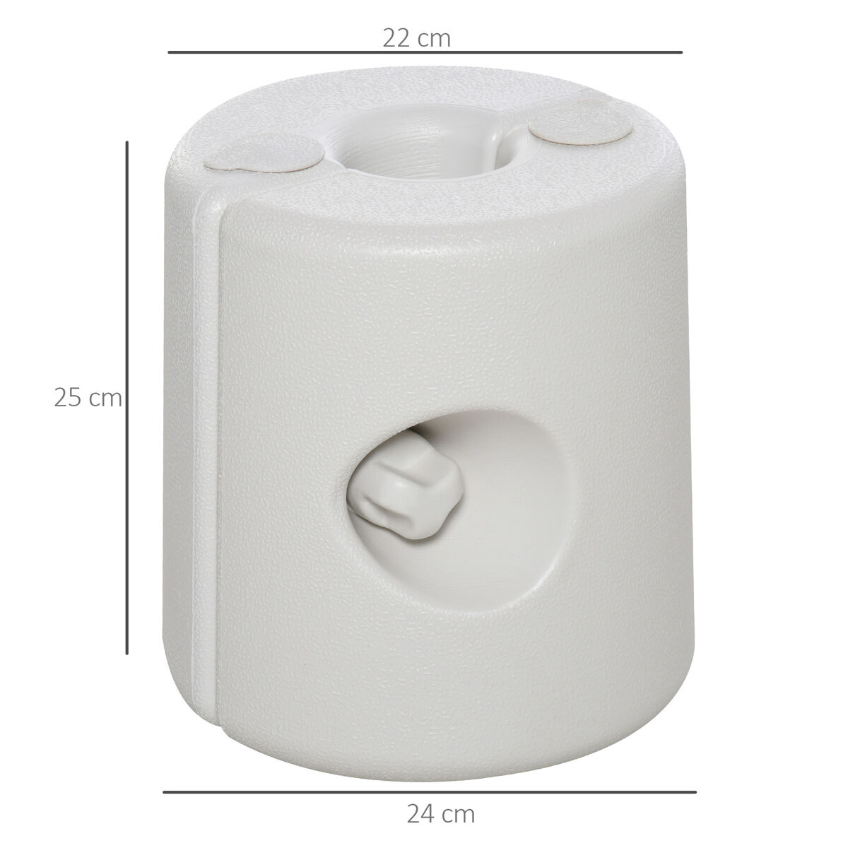 Assegure a sua tenda Outsunny de forma firme e segura durante todo o dia com o nosso conjunto de pesos para tendas. Cada peça é fabricada com plástico PE, resistente e durável para uso ao ar livre. Fáceis de transportar e encher com areia ou água, estão fabricadas para estruturas com pés de 2 a 3 cm de diâmetro. E quando estão vazios, estes pesos para pérgola são leves e fáceis de transportar Características: - Conjunto de 4 pesos para tendas de festas ou pérgolas - Adequado para pés de tenda com tamanho entre 2 e 3 cm de diâmetro - Fabricado em plástico (PE) de alta qualidade e resistente às condições meteorológicas - Pode ser preenchido com água ou areia - Fácil de fixar com parafusos de bloqueio - Leve e fácil de transportar quando vazio - Ambos os lados possuem ranhuras para facilitar o transporte - Ideal para utilização em superfícies macias ou duras - Requer montagem Especificaciones: - Cor: Branco - Material: Plástico PE - Dimensões totais: Ø22/24 x 25 cm - Dimensão superior: Ø22 cm - Dimensão inferior: Ø24 cm - Altura: 25 cm - Peso cheio de água: 9 kg - Referência: 840-046 O pacote inclui: - ● 4 x Suportes de peso para tendas;