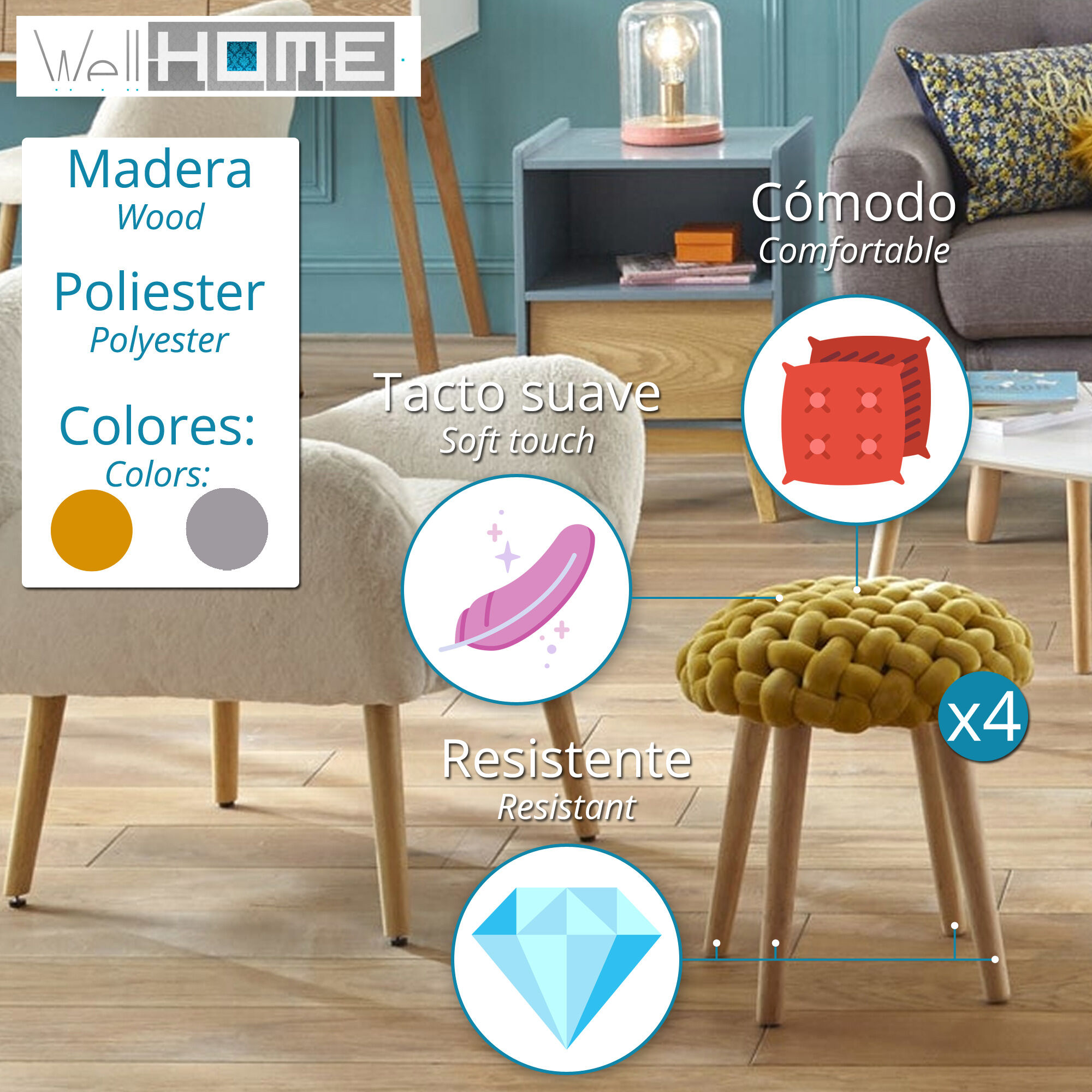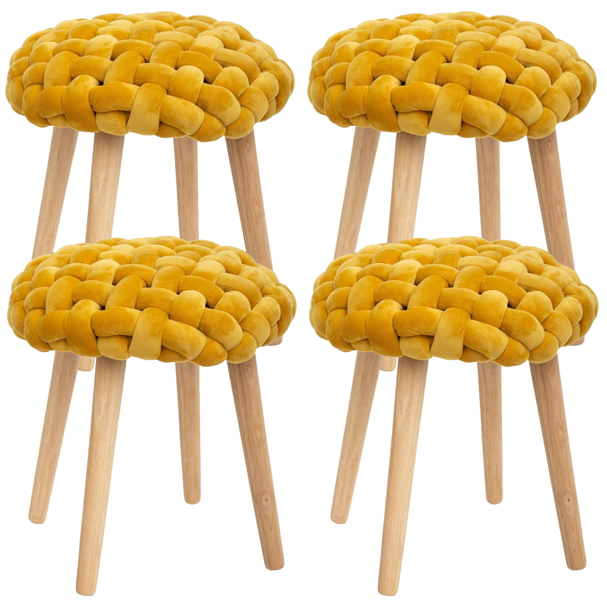 Conjunto de 4 bonitos bancos em tecido tricotado.
