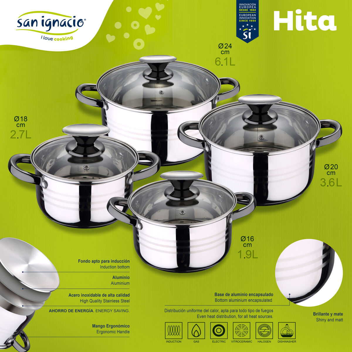 Consiste em 4 panelas com suas respectivas tapas de vidro.