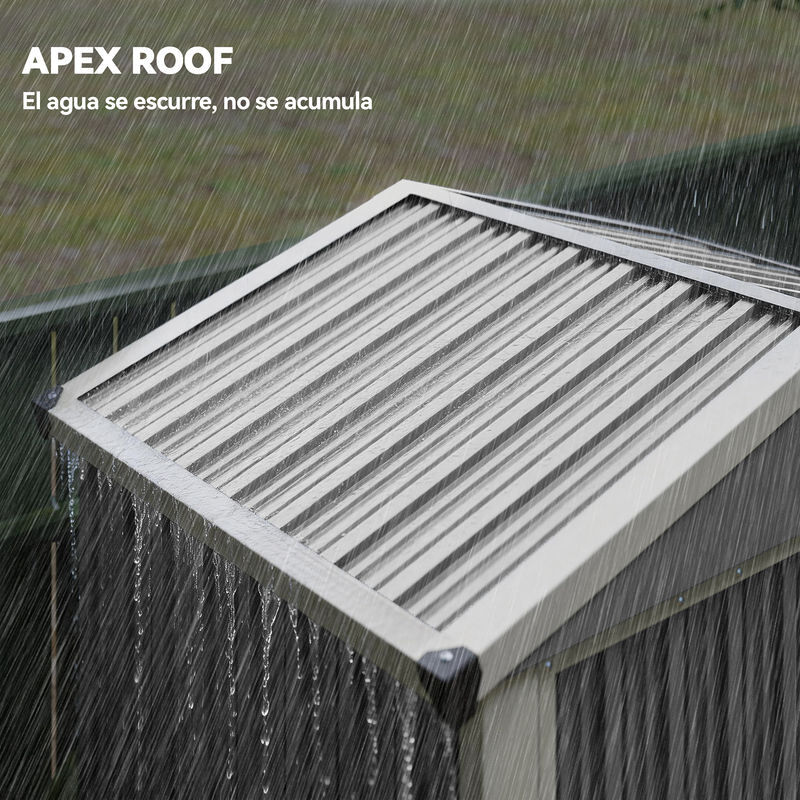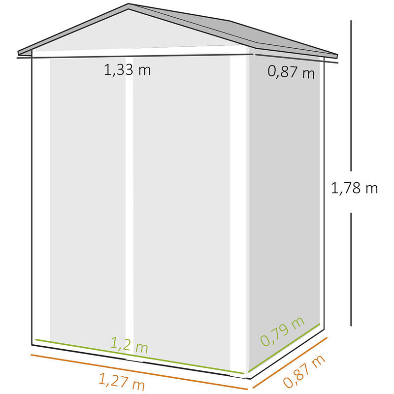 Proteja e organize as suas ferramentas com este abrigo de jardim exterior metálico. A sua estrutura de aço galvanizado e o telhado inclinado resistem às condições climatéricas, enquanto as portas duplas facilitam o acesso. Uma solução compacta e prática para manter o seu espaço exterior organizado durante todo o ano. Características: - Abrigo de exterior com portas duplas de 109 cm que facilitam o acesso a objetos volumosos - Casota de jardim com estrutura fabricada em aço galvanizado para maior resistência ao exterior - Telhado inclinado com viga superior que melhora o escoamento da água - Revestimento resistente aos raios UV para uso prolongado ao ar livre - Interior de 120x79x175 cm sobre uma base compacta de 1,1 m² - Esta casota de exterior requer montagem e inclui luvas para uma instalação mais segura Especificaciones: - Cor: verde - Material: aço galvanizado - Medidas totais: 133x87x178 cm (LxPxA) - Medidas interiores: 120x79x175 cm (LxPxA) - Medidas da base: 127x87 cm (LxP) - Medidas da porta: 109x154 cm (LxA) - Resistência à neve: 20 kg/m² - Referência: 84H-459V00GN O pacote inclui: - ● 1 x Abrigo de jardim; ● 1 x Par de luvas; ● 1 x Manual de instruções