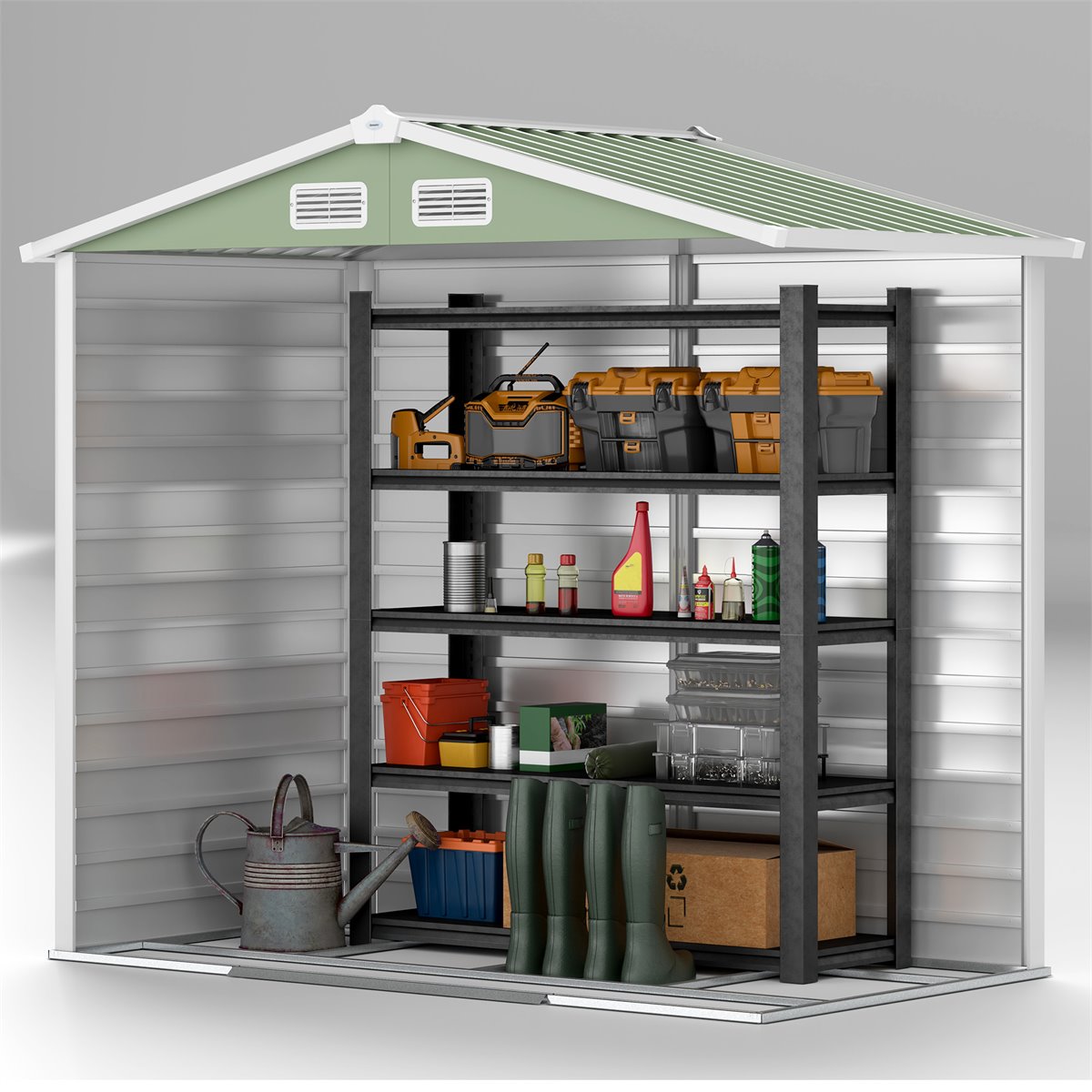 O abrigo Outsunny para exteriores é uma opção prática para organizar o seu espaço ao ar livre. Conta com quatro respiradores que melhoram a ventilação e um telhado de duas águas que evita acúmulos de água e neve. As suas portas deslizantes duplas com cadeado facilitam o acesso e oferecem maior segurança. Fabricado em aço galvanizado anticorrosivo, é perfeito para guardar ferramentas de jardim, bicicletas e outros objetos, acrescentando funcionalidade a qualquer espaço exterior Características: - Este abrigo de jardim tem um desenho de telhado em forma de ápice que previne o acumulo de água e neve - Possui respiradouros que garantem o fluxo de ar e reduzem a condensação interna - Dispõe de portas deslizantes duplas que facilitam a entrada e saída - Inclui um cadeado para melhorar a segurança - Está construído em aço galvanizado pintado para oferecer maior durabilidade - O quadro de suporte e as vigas transversais aumentam a sua estabilidade estrutural - O seu desenho com ripas horizontais simplifica a montagem - Inclui luvas protetoras para garantir uma montagem segura Especificaciones: - Cor: Verde claro - Material: Aço galvanizado - Medidas totais: 213x120x166/194 cm (CxLxA) - Medidas da base: 207x114 cm (CxL), 2,36 m² - Medidas interiores: 197x97 cm (CxL) - Medidas da porta individual: 93x158 cm (CxA) - Medidas das ventilações: 22,5x9,5 cm (CxA) - Carga máxima de neve: 30 kg/m² - Referência: 84H-225V00YG O pacote inclui: - ● 1 x Abrigo de armazenamento para jardim; ● 1 x Cadeado com chaves; ● 1 x Par de luvas; ● 1 x Manual de instruções.
