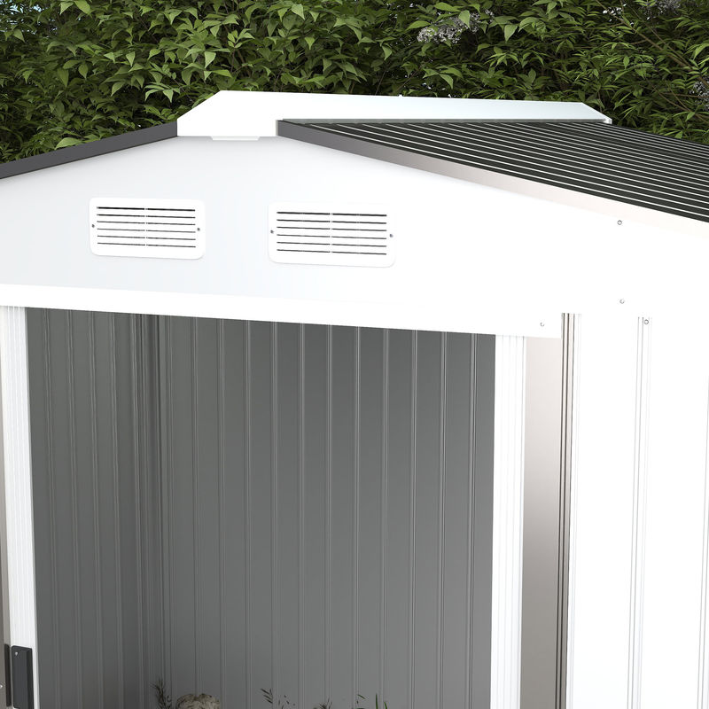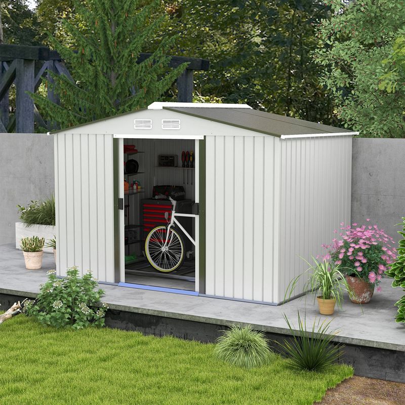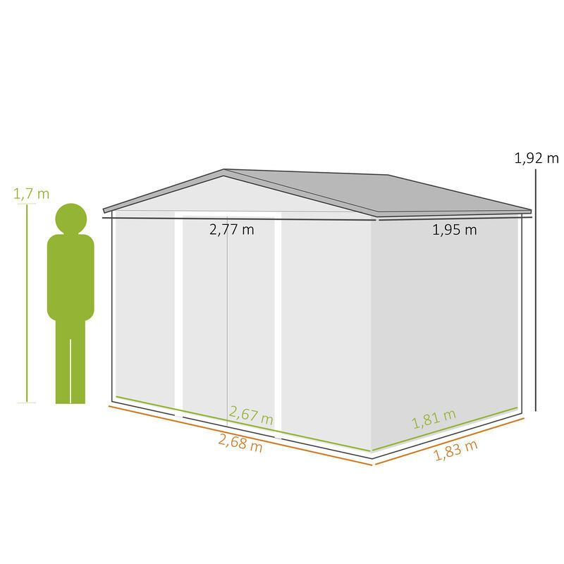 Se está à procura de um abrigo espaçoso, este da Outsunny é ideal. Perfeito para manter ferramentas de jardim, bicicletas e outros itens ao ar livre organizados. Fabricado em aço galvanizado com fundação, garantindo maior estabilidade e durabilidade. O telhado inclinado evita o acumular de água e protege contra a oxidação. Adquira já o seu! Características: - Amplo espaço de armazenamento para ferramentas, equipamentos de jardinagem e muito mais - Fabricado em aço galvanizado com revestimento adequado para exterior - Porta dupla de correr para fácil acesso - Teto inclinado para evitar poças de água - 4 aberturas proporcionam ventilação ideal, evitando o acúmulo de mofo - Base com fundação (piso não incluso), com todas as peças pré-cortadas e pré-furadas - Recomenda-se o uso de luvas para sua instalação - Requer montagem Especificaciones: - Cor: Branco e cinza escuro - Materiais: Aço galvanizado e PP - Medidas totais: 277x195x192 cm (CxLxA) - Medidas do interior: 267x18 cm - Medidas da porta: 96x152 cm (CxA) - Altura do beiral: 155 cm - Medidas dos respiradouros: 21,8x9,8 cm - Referência: 845-031SR O pacote inclui: - ● 1 x Abrigo de jardim; ● 1 x Manual de instruções