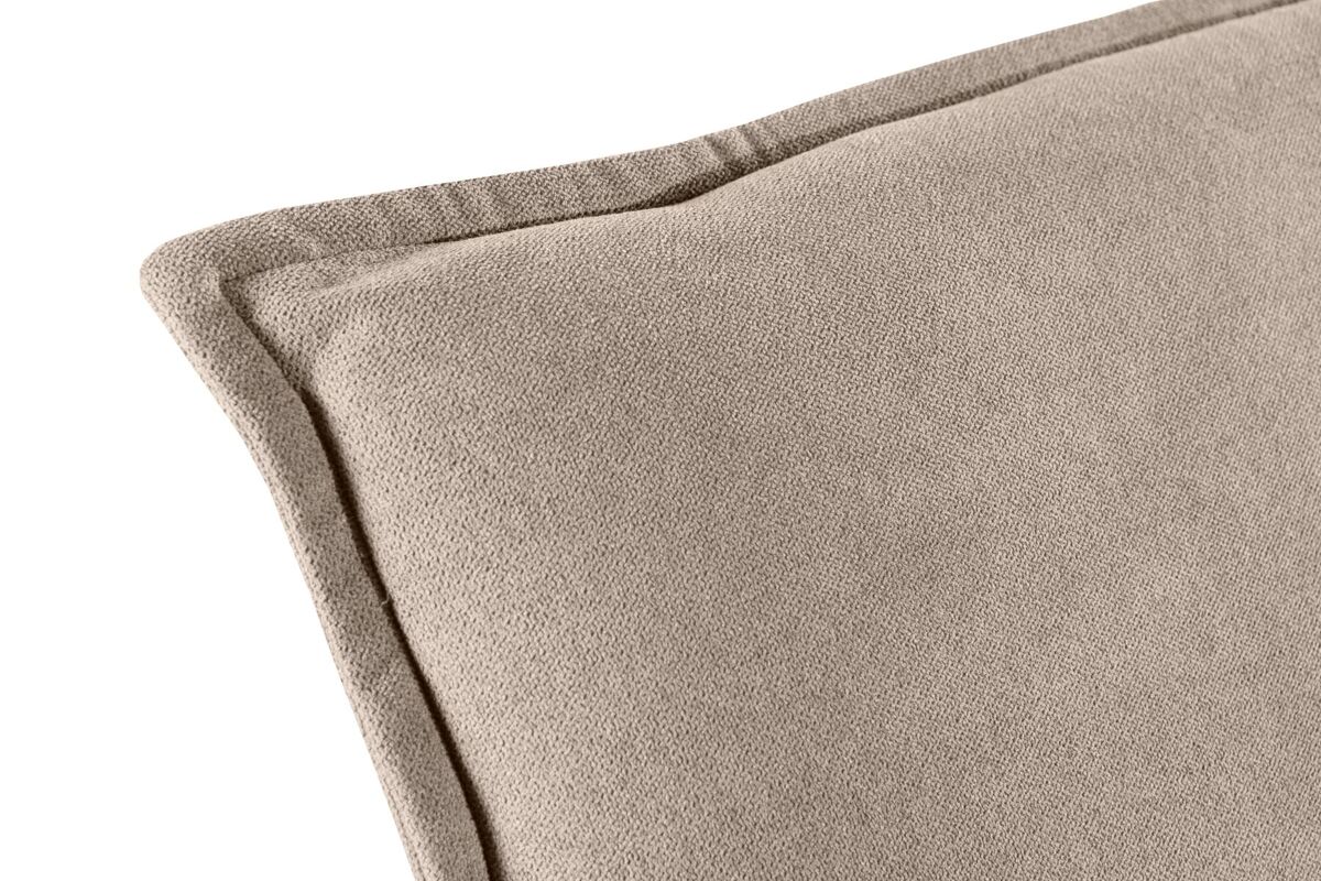 Estrutura interior em madeira de faia com reforços DM de 12 mm, buchas incluídas. Revestimento interior em fibra REPREVE reciclada de 400g/m2 e espuma Hr. Várias opções de acabamento exterior: couro sintético (branco, preto e chocolate) ou tecido AquaClean (bege, cinzento claro e azul-marinho). A tecnologia AquaClean® é um tratamento revolucionário que permite limpar as mangas com um pouco de água. Desta forma, consegue-se uma manutenção muito simples num mínimo de tempo.