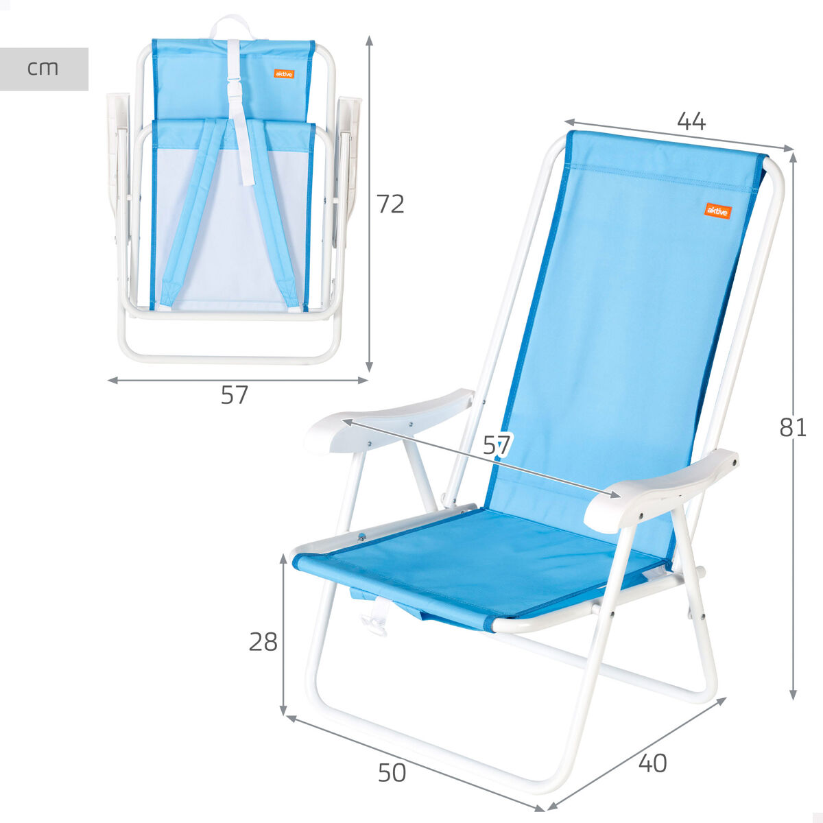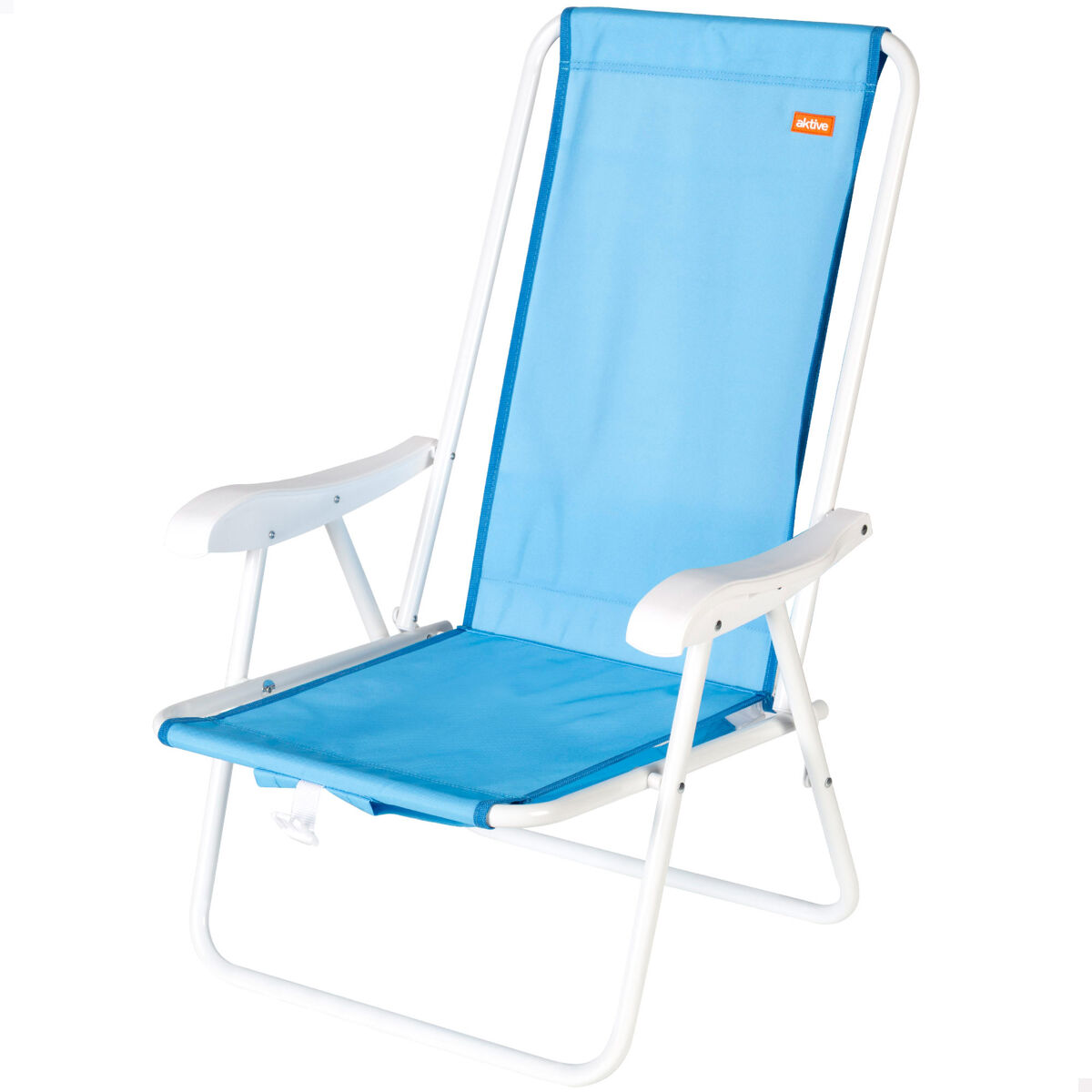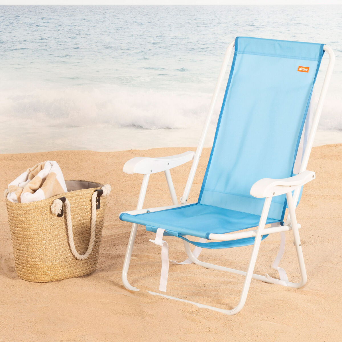 A cadeira dobrável de praia Aktive foi projetada para oferecer conforto e praticidade durante seus dias ao ar livre. Seu encosto alto proporciona suporte lombar ideal, permitindo que você descanse confortavelmente durante longos dias de sol. Possui estrutura de aço e assento de poliéster, ideal para uso frequente em ambientes como praia, piscina ou camping. Graças ao seu sistema de dobragem compacto, pode ser facilmente transportada como uma mochila pelas alças, deixando suas mãos livres para carregar outros acessórios. Inclui também apoios de braço para uma postura mais relaxada e um design leve que facilita o transporte e o armazenamento. Uma cadeira funcional e confortável, ideal para quem busca aproveitar o verão sem complicações.