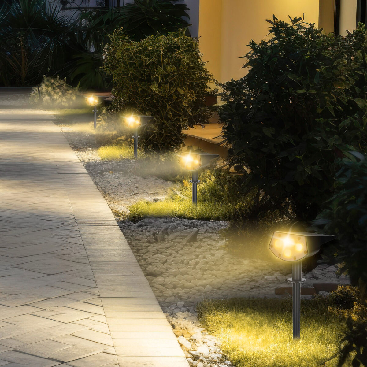 - Iluminação potente e eficaz: cada baliza possui 20 LEDs de 5-10 lúmens com um alcance de até 2 metros para iluminar caminhos e jardins.