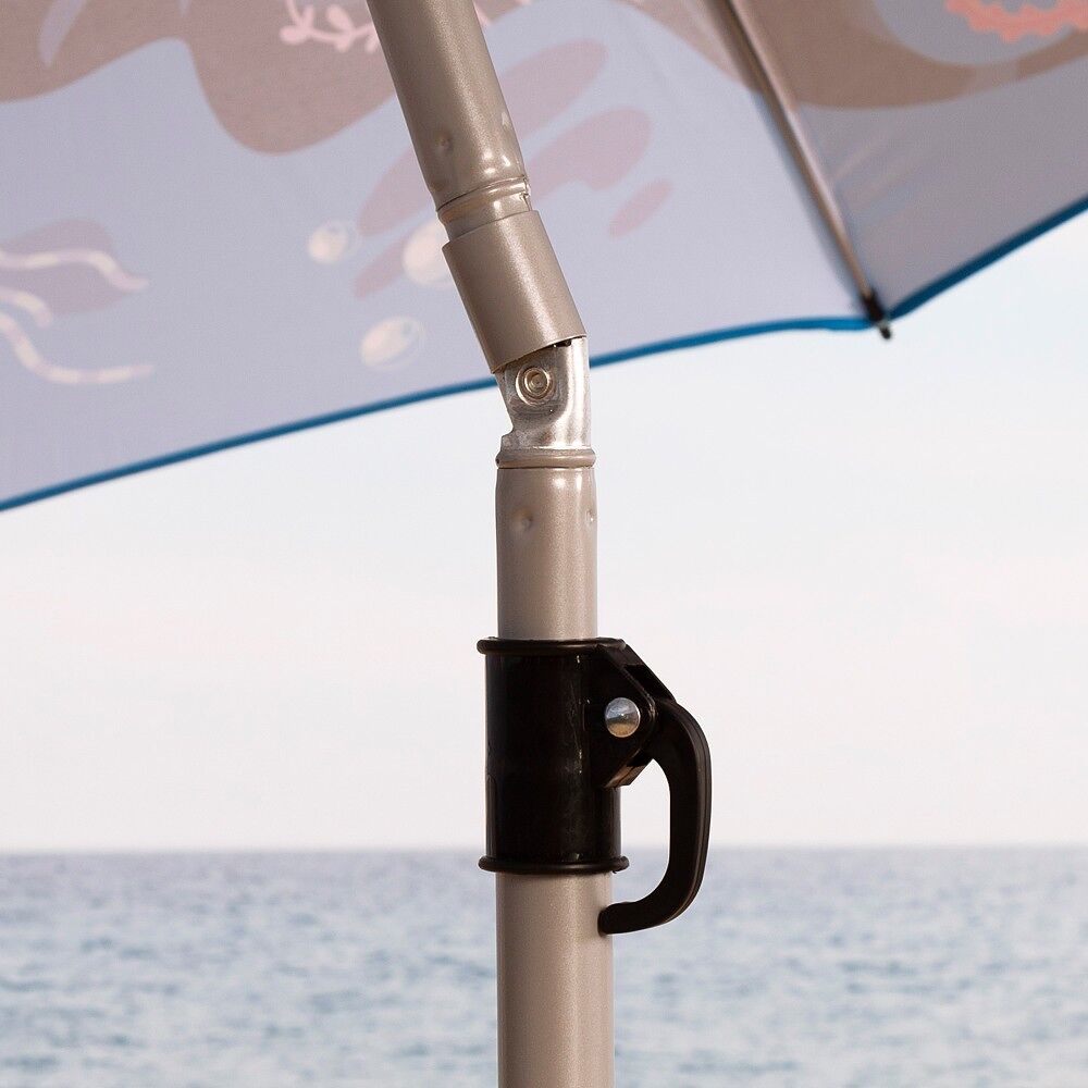 Mergulhe totalmente no verão com o divertido guarda-sol Aktive. Seu design marcante com estampa do mundo marinho é perfeito para quem busca um toque extra de originalidade e exclusividade na praia. É confeccionado em tecido de poliéster de alta qualidade e haste de aço resistente, com acabamento em espigão para fixa-lo facilmente na areia. Seu tamanho grande proporciona sombra suficiente para o seu espaço pessoal, enquanto seu tecido com fator UV40 garante maior proteção contra os raios solares. Graças ao seu mastro regulável em altura e reclinável, que permite orientar o guarda-sol de acordo com a posição do sol, este guarda-sol inclinável adapta-se às suas necessidades, protegendo-o do sol em todos os momentos. Além disso, incorpora 8 hastes para maior resistência contra ventos fortes. O guarda-sol vem com uma bolsa com alça incluída para fácil armazenamento e transporte.