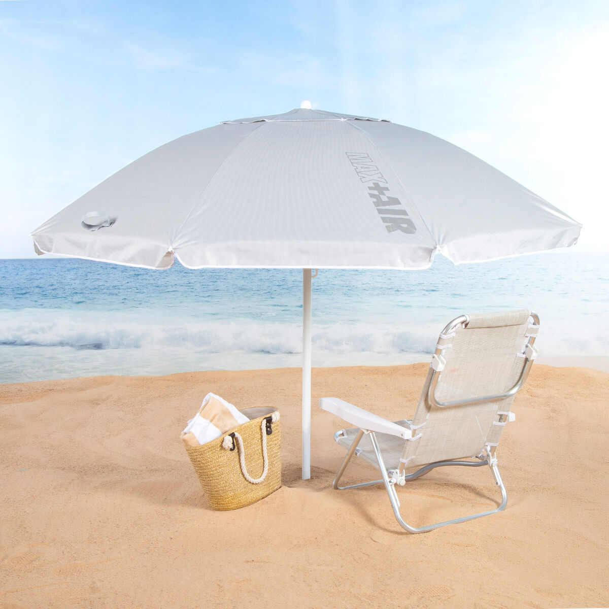 - Design aconchegante e funcional: guarda-sol de praia bege com ventilação superior e dimensões de Ø200 cm, ideal para criar uma ampla área sombreada na praia, no jardim ou no terraço