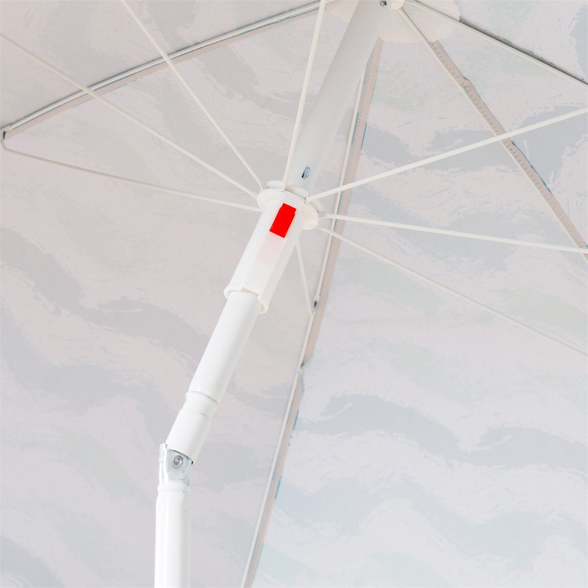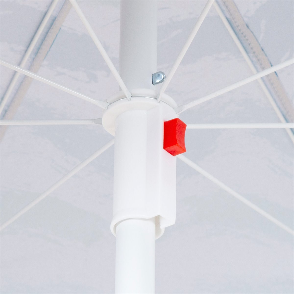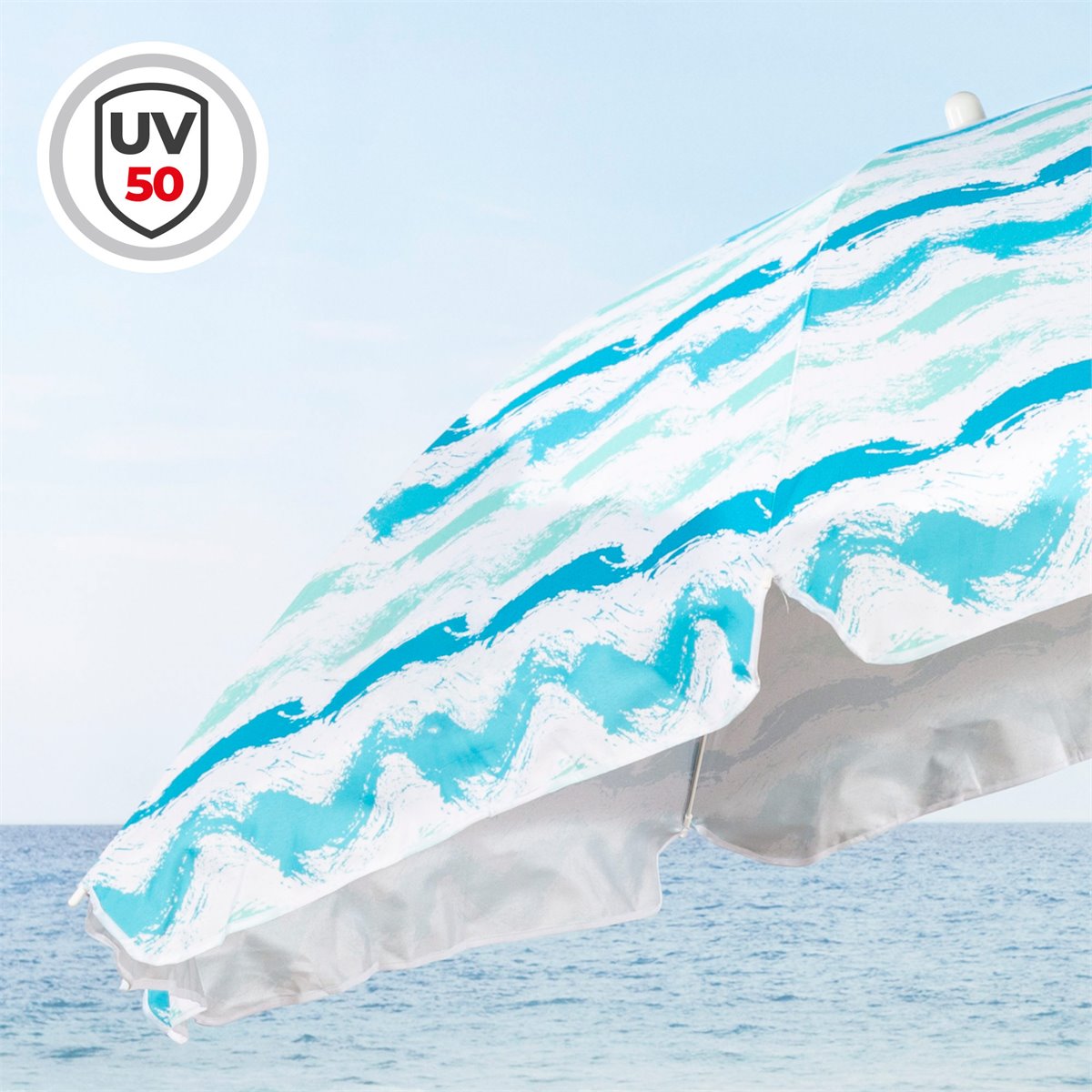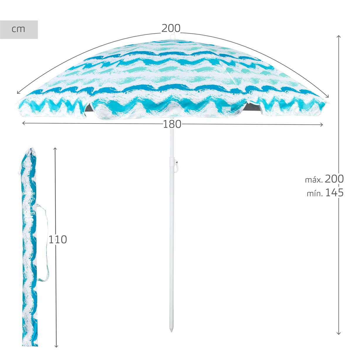 Aproveite a praia com o guarda-sol Aktive de 200 cm, projetado para fornecer sombra e proteger você do sol. Seu mastro de aço de 22/25 mm e 8 nervuras reforçam a estrutura, proporcionando maior resistência ao vento. Incorpora um revestimento interno prateado e tecido com proteção UV50, que bloqueia os raios ultravioleta e reduz a sensação térmica para maior conforto. Graças ao seu sistema de inclinação, você pode ajustar a posição do guarda-chuva de acordo com a orientação do sol. Seu design desmontável facilita a montagem, enquanto o saco de transporte com alça permite um transporte confortável.