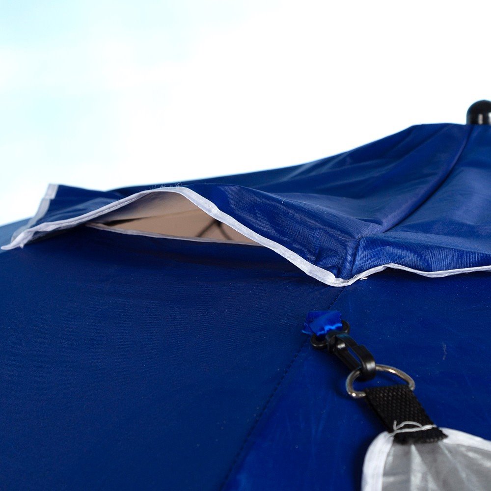 - Resistência e durabilidade superiores: confeccionado em tecido de poliéster e poste de aço. Possui 8 nervuras e possui chaminé de ventilação superior integrada que promove a circulação de ar