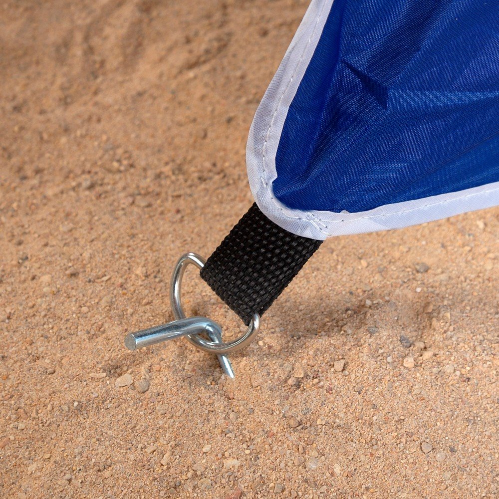 - Ajustável e fácil de instalar: guarda-sol à prova de vento com mastro regulável em altura (125-210 cm) e com acabamento em espigão para pregar facilmente na areia. O guarda-sol inclui 8 estacas (4 para fixar os painéis laterais ao chão e 4 com corda para segurar o guarda-sol e evitar que seja soprado)