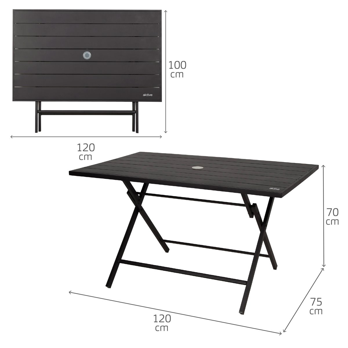 Crie um espaço confortável e funcional no seu jardim com esta mesa dobrável de aço preto. Sua estrutura robusta permite que seja utilizado tanto em ambientes externos quanto internos, garantindo durabilidade e estabilidade com capacidade de carga de até 30 kg. Seu design dobrável facilita o armazenamento e o transporte, adaptando-se a qualquer espaço disponível. Com dimensões de 120x75x70 cm, oferece superfície suficiente para até 4 pessoas, sendo ideal para refeições, reuniões ou qualquer atividade ao ar livre. Ele também possui um prático furo central compatível com guarda-sóis comuns, permitindo que você adicione proteção solar nos dias mais quentes. Perfeita para jardins, terraços e pátios, esta mesa combina resistência, funcionalidade e estilo em qualquer ambiente.