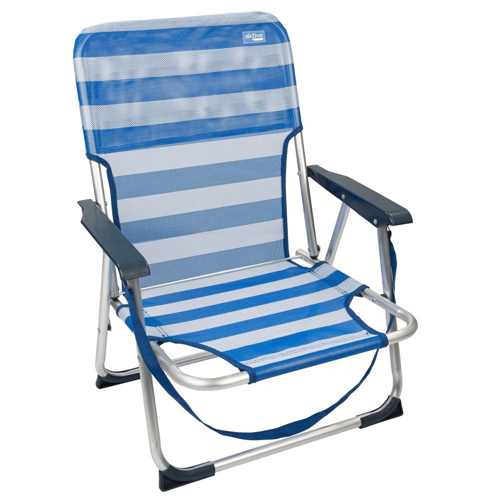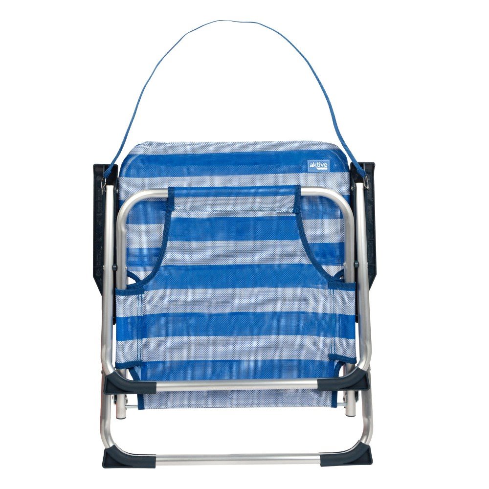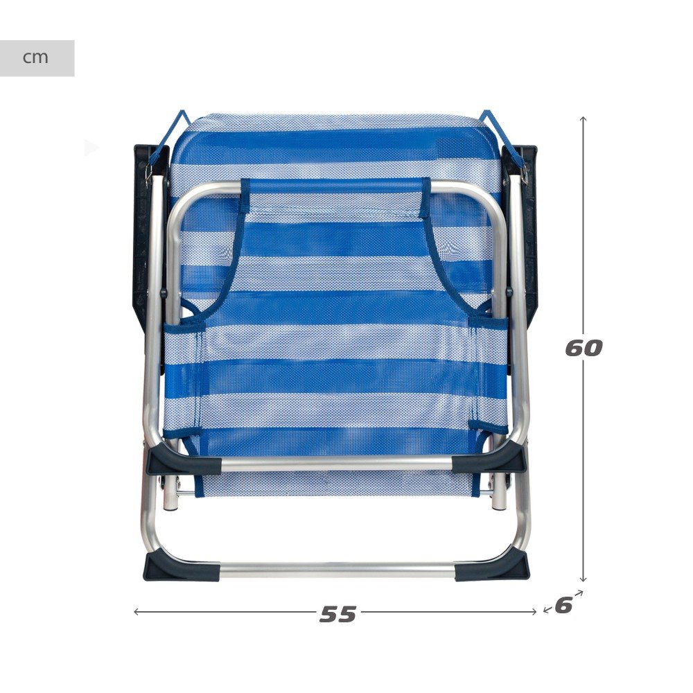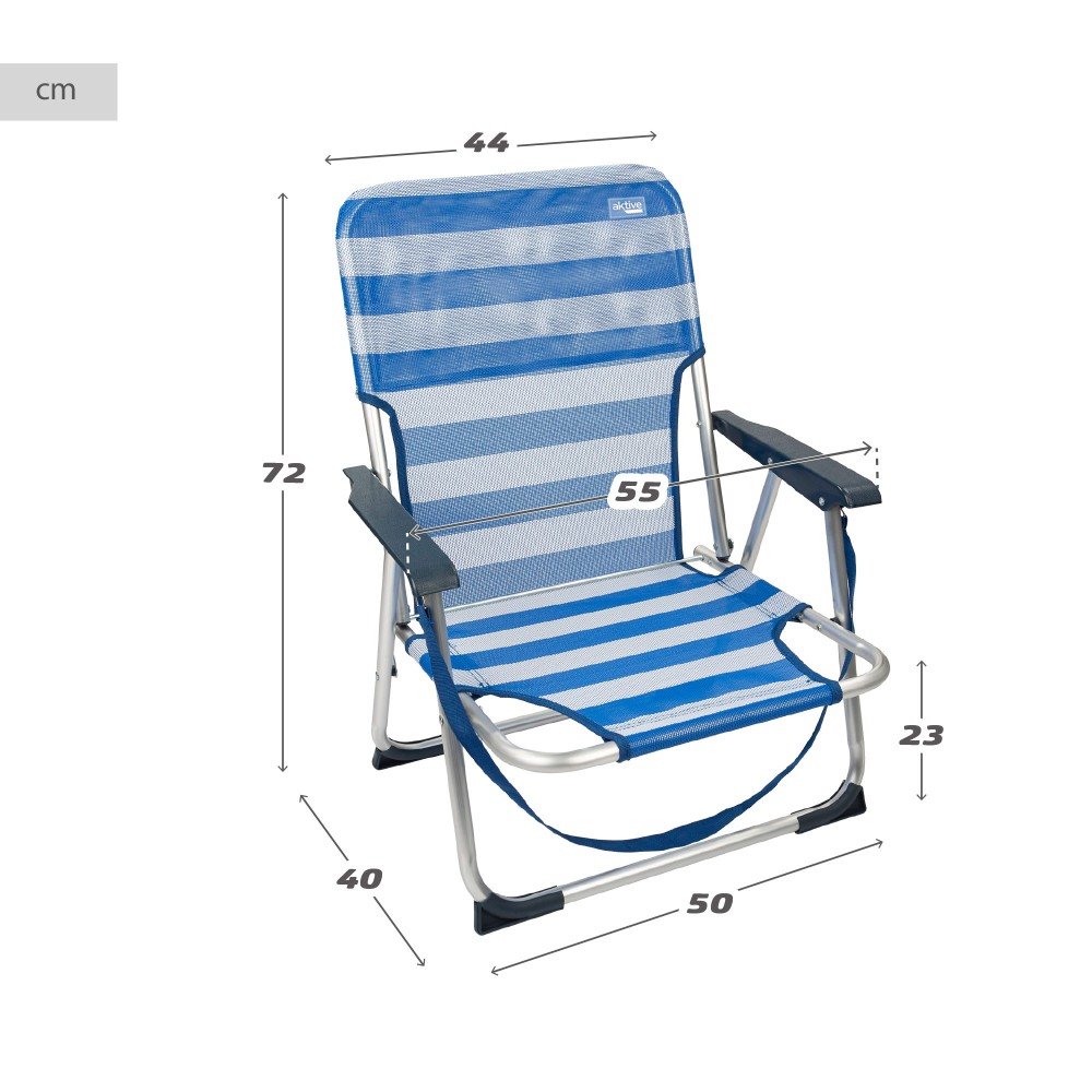- Design atraente e versátil: cadeiras dobráveis com encosto fixo e assento baixo, num design clássico às riscas azuis e brancas, perfeitamente adaptadas a qualquer atividade ao ar livre, quer seja na praia, no parque ou no parque de campismo.