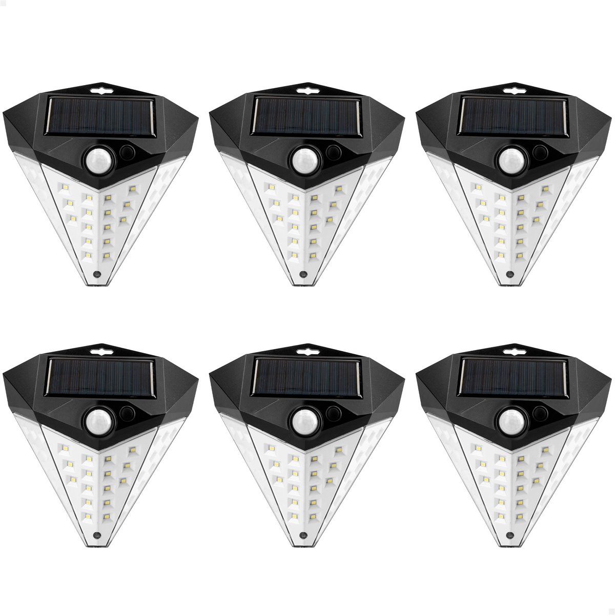 - Pacote de 6 luminárias de parede LED solares: iluminação externa eficiente e sustentável