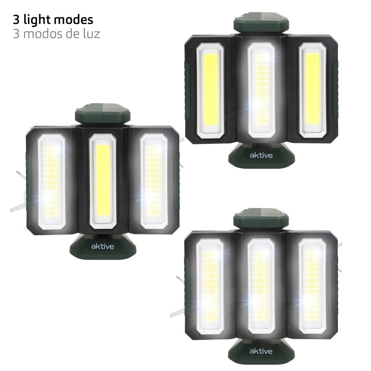 O projetor de exterior Aktive triplo LED fornece até 1500 lúmenes de luz potente com um alcance de 30 metros, garantindo uma visibilidade óptima no exterior. A sua base magnética permite-lhe fixar-se facilmente em superfícies metálicas sem necessidade de suportes. Equipado com uma bateria recarregável, oferece até 7 horas de autonomia e inclui uma função de powerbank. O seu design portátil com pega facilita o seu transporte, tornando-o ideal para actividades ao ar livre ou oficinas. A sua caixa com certificação IP20 protege-o contra poeiras e salpicos, garantindo resistência e durabilidade.