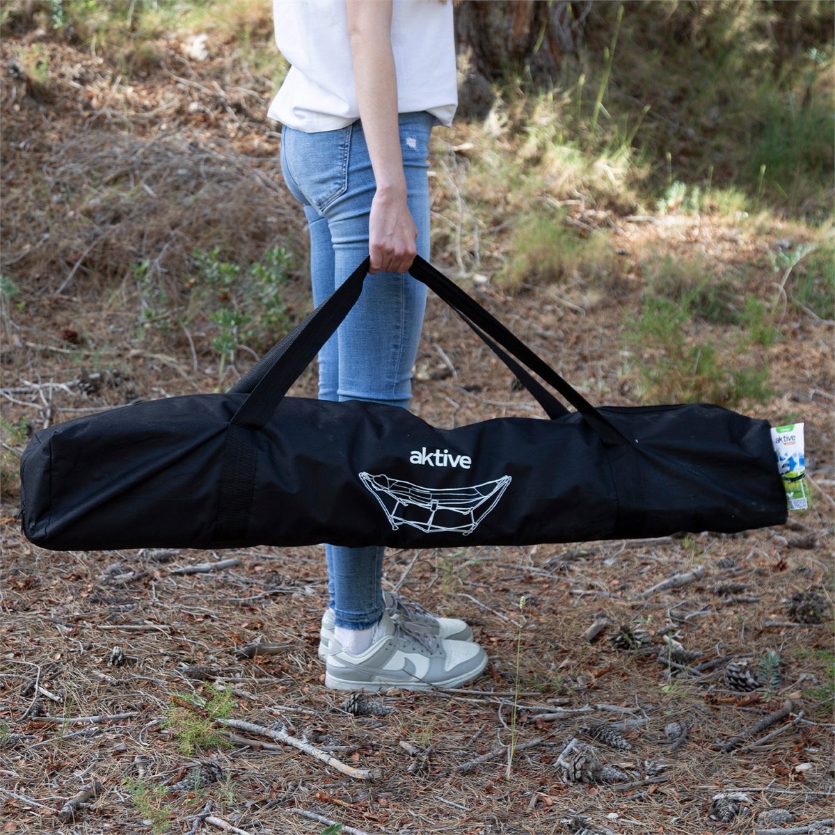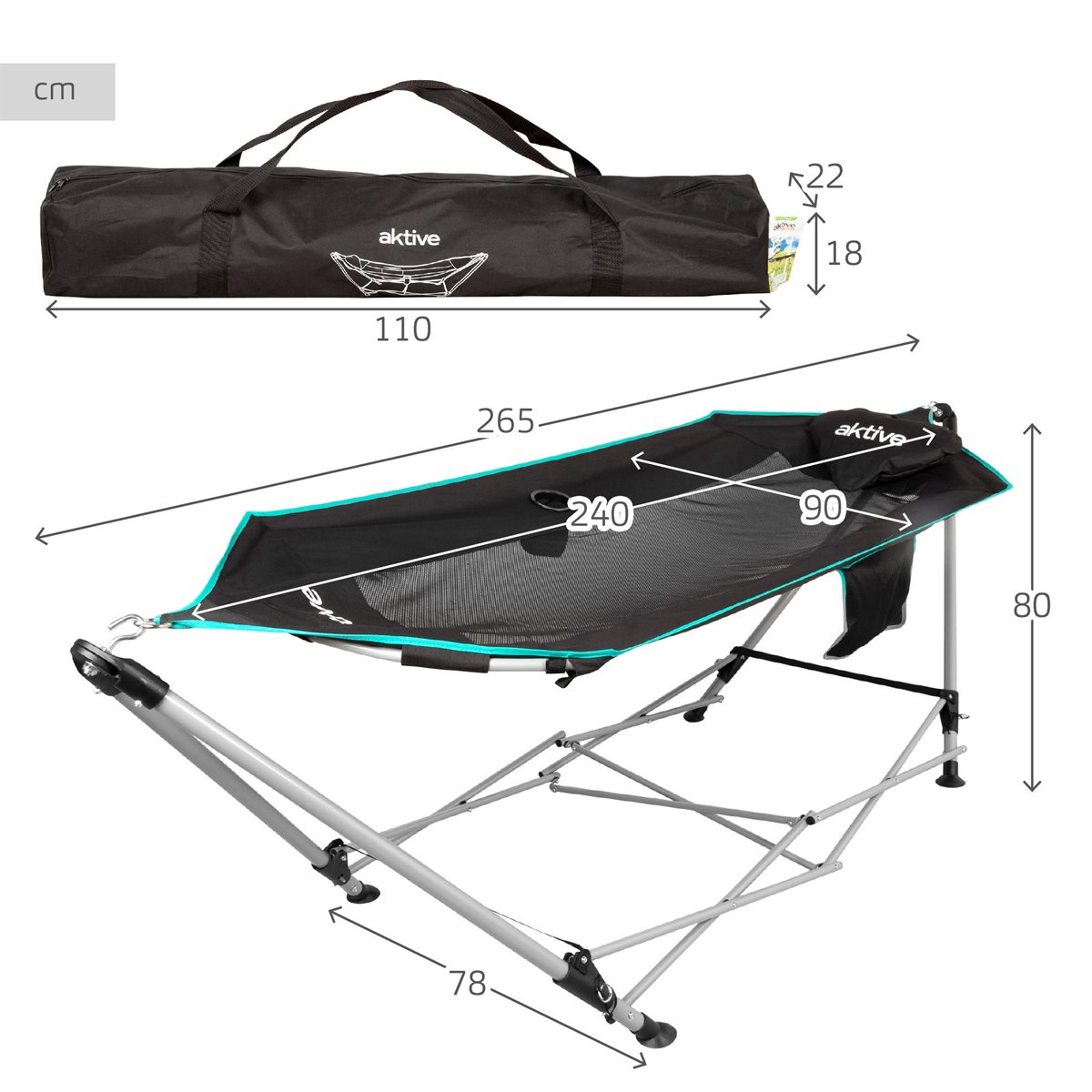 Relaxe onde quiser com esta rede dobrável com estrutura de aço, projetada para proporcionar conforto e estabilidade em qualquer ambiente. O assento em malha de poliéster respirável promove ventilação e reduz o acúmulo de calor, enquanto o porta-copos integrado mantém sua bebida sempre à mão. Graças ao seu sistema de dobragem, você pode transportá-lo e armazená-lo facilmente. Com dimensões de 265x78x80 cm, é ideal para desfrutar de uma agradável pausa no acampamento, na praia ou no jardim.