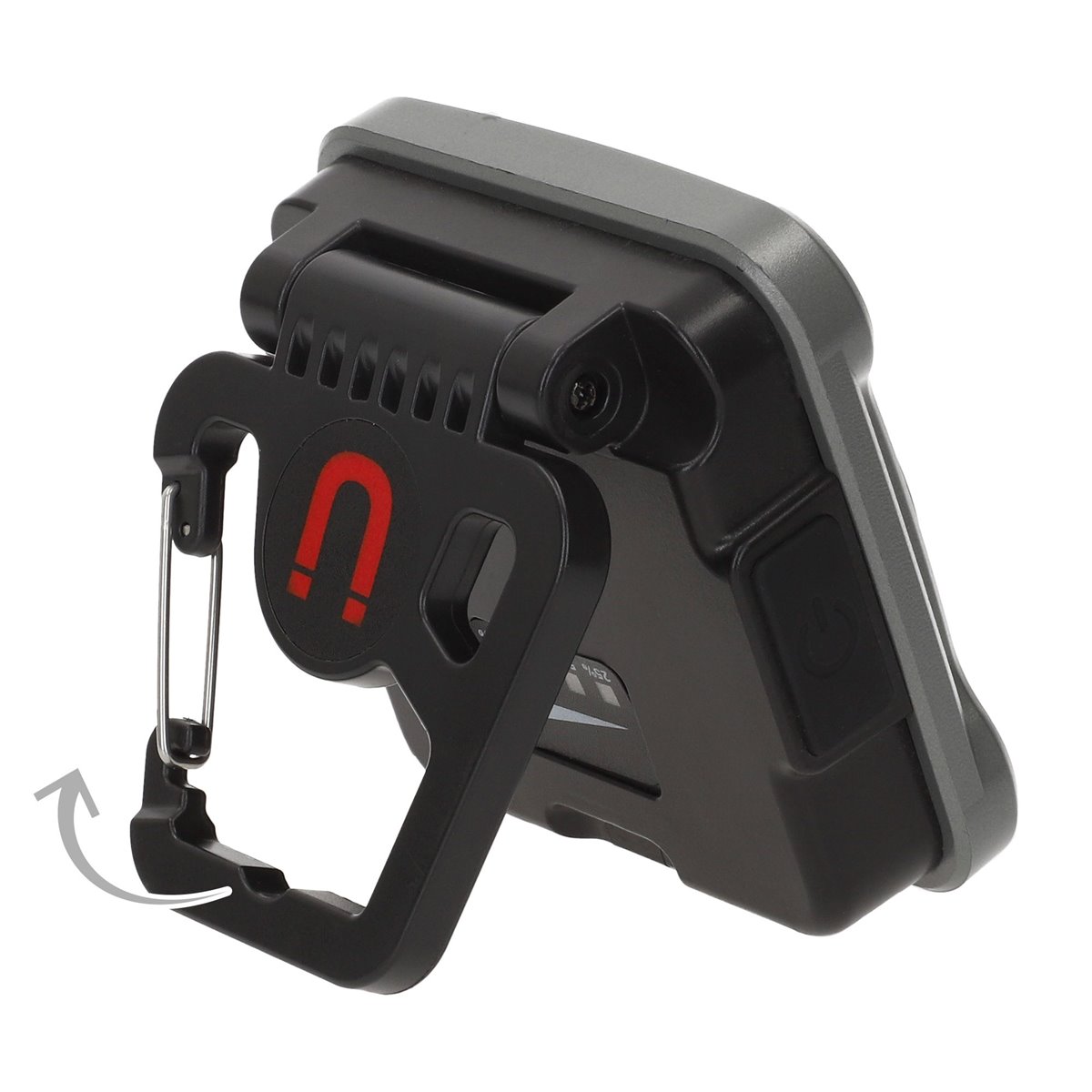 - Design multifuncional: ajusta-se em 3 posições para iluminar em diferentes direções e possui furo na base para montagem em suportes e ímã para fixação em superfícies metálicas, ideal para situações de pouca luz