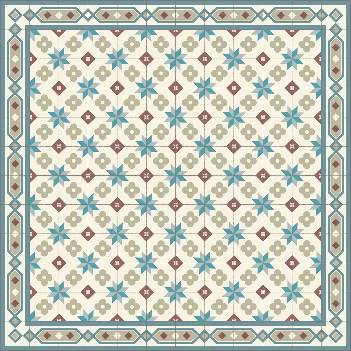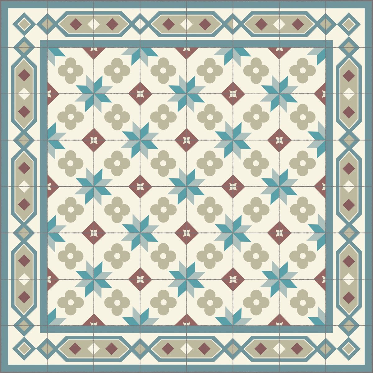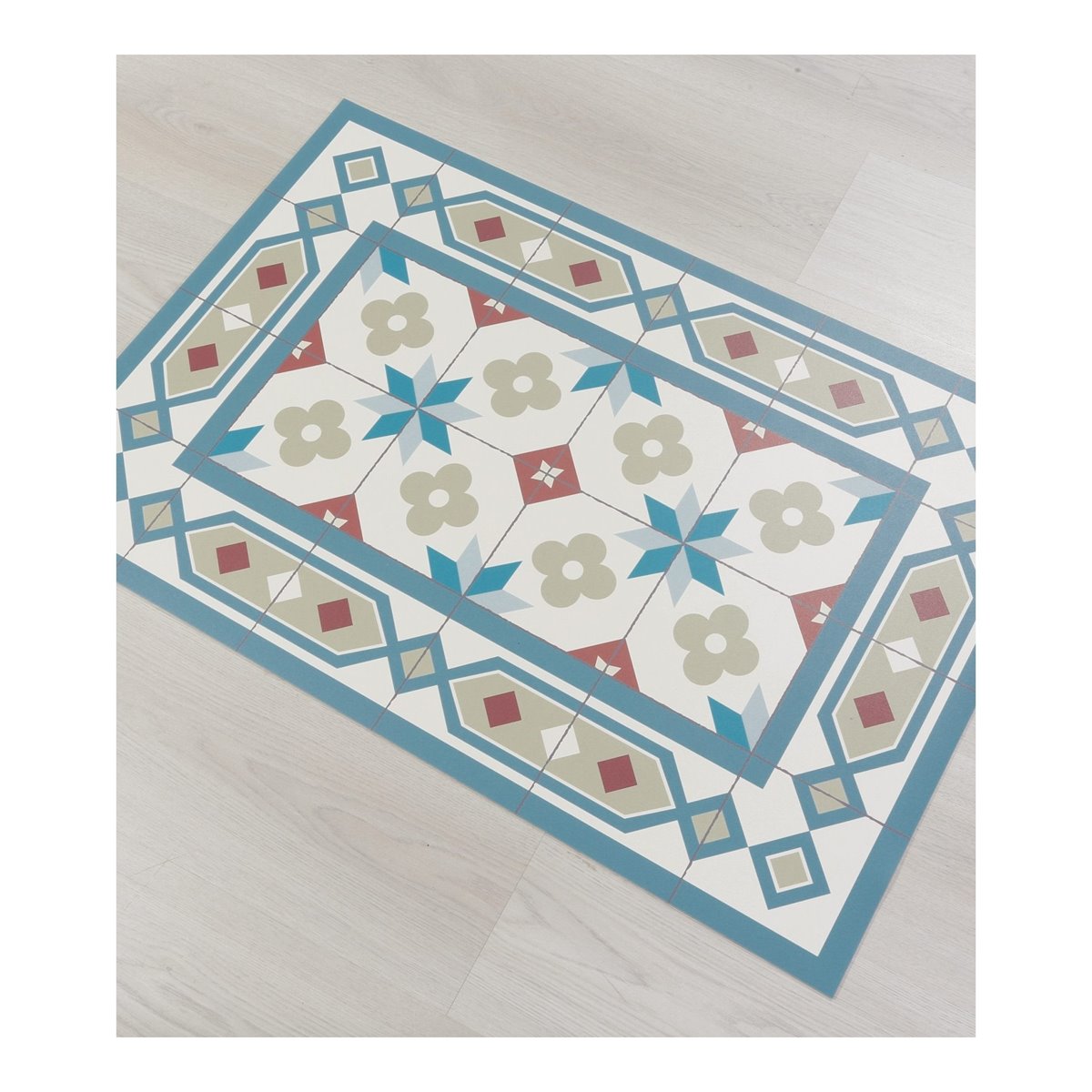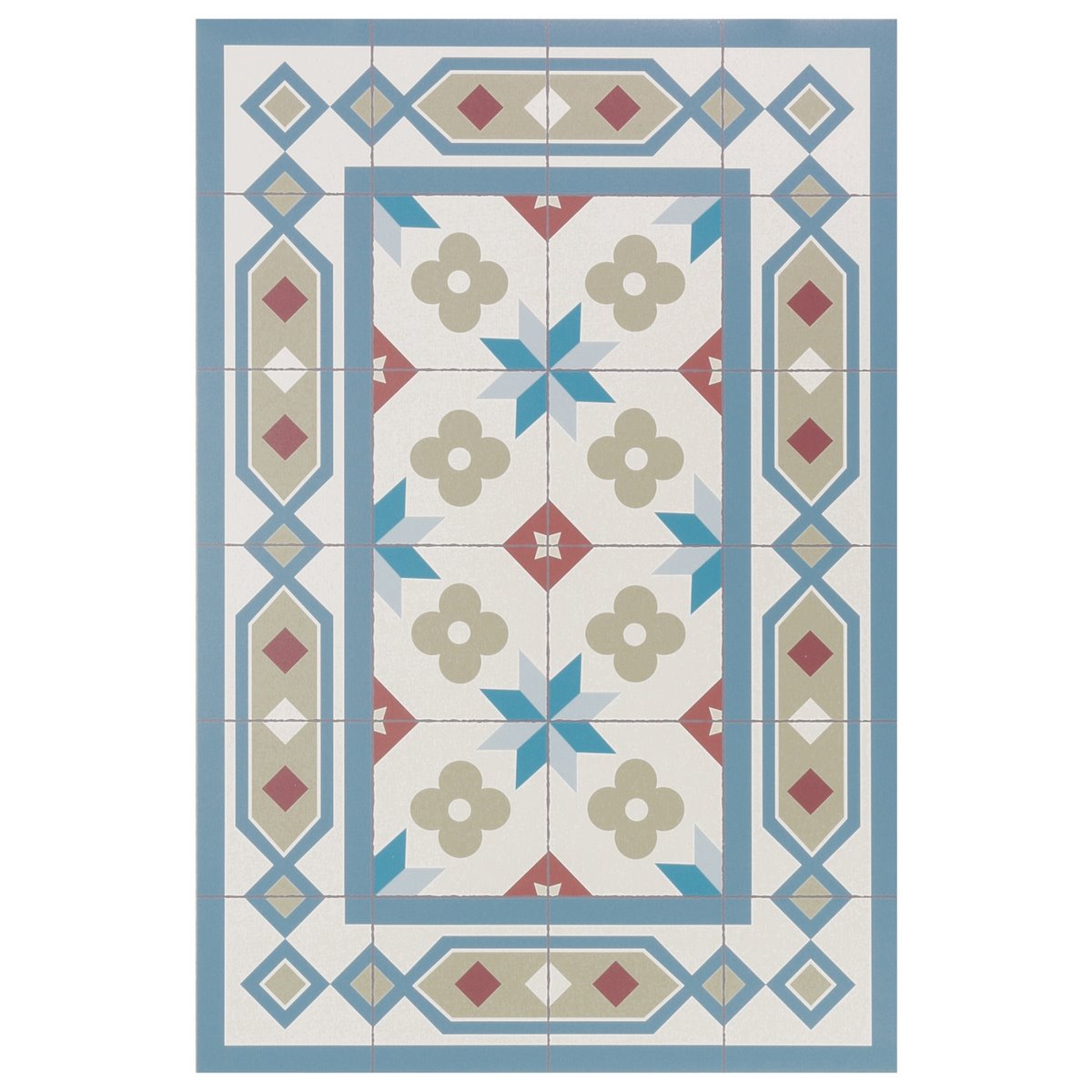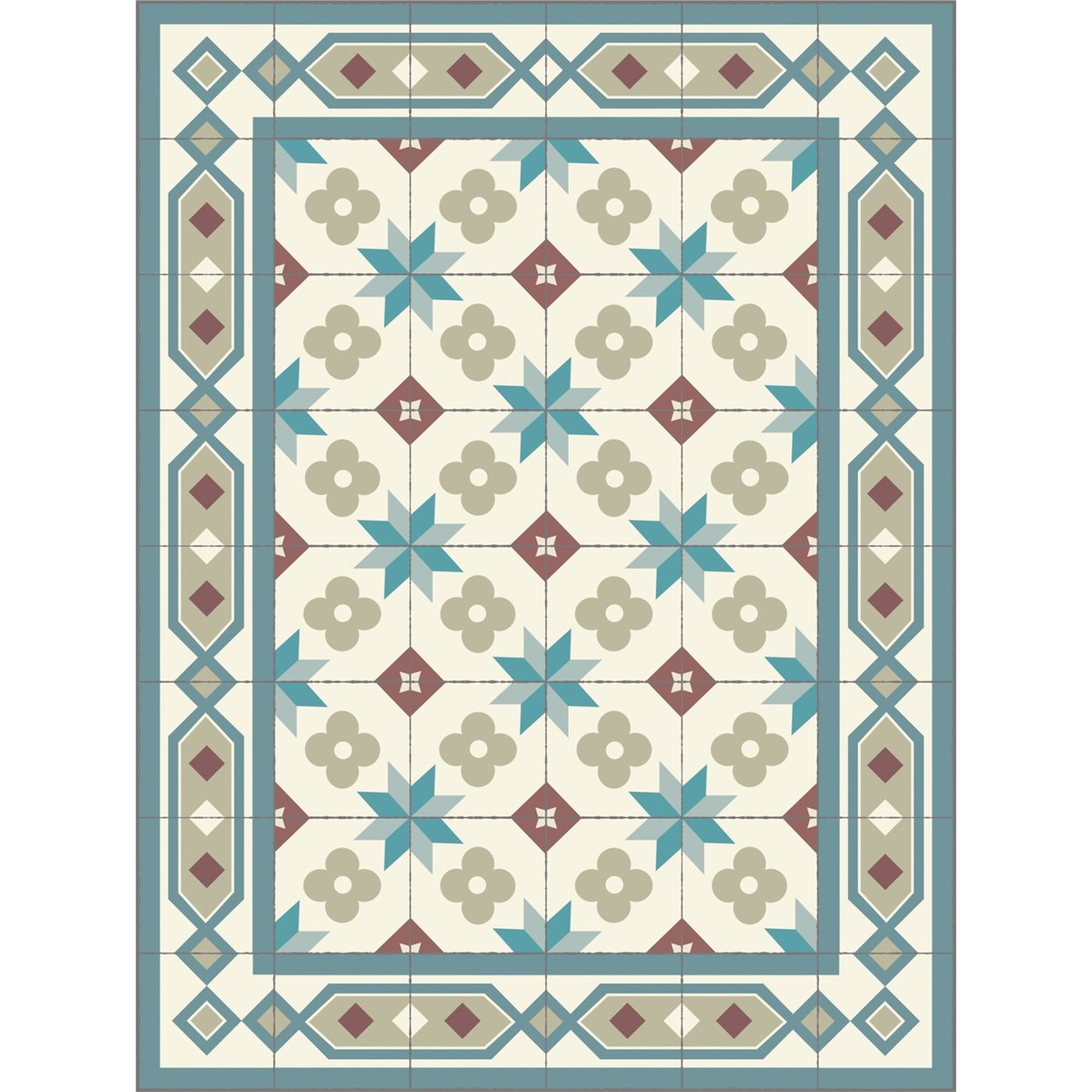 As fotos de pormenor do tapete são a melhor representação da cor real. As fotos gerais do tapete são desenhos digitais para verificar a distribuição dos azulejos em cada tamanho de tapete.