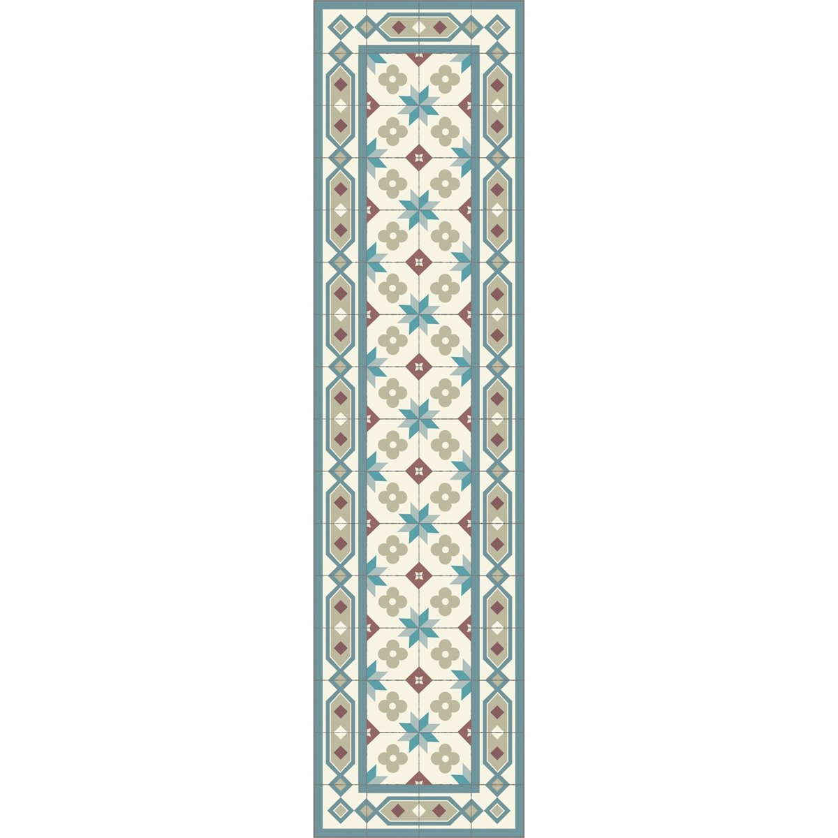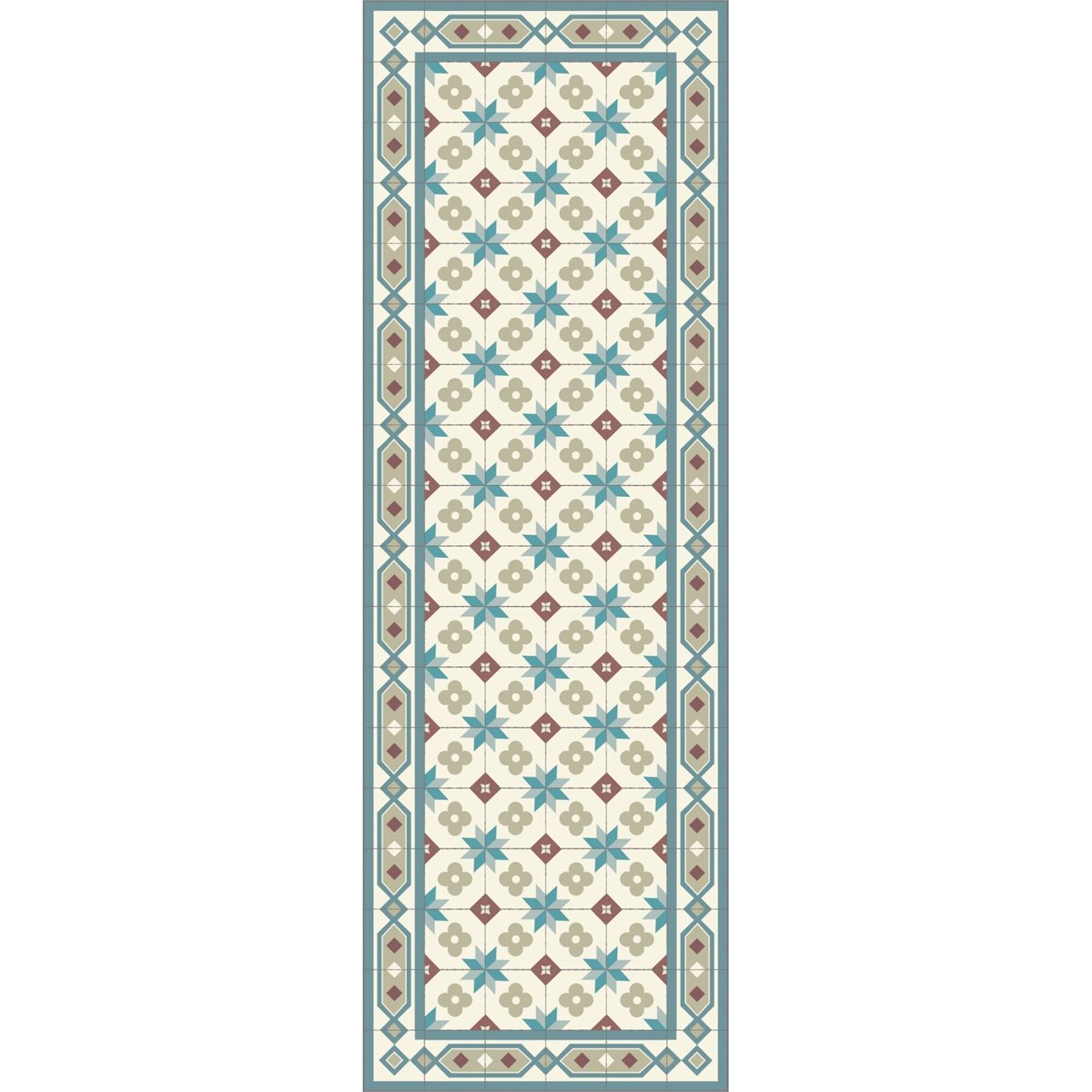 Aparelho de vinil estilo boho de alta qualidade completamente feito à medida modelo Siroco. Um tapete elegante, com uma combinação de cores muito agradável. Uma óptima escolha como tapete de vinil para cozinha, hall, sala de estar ou salão. O desenho é feito à medida. O tapete pode ser lavado com água e sabão neutro.