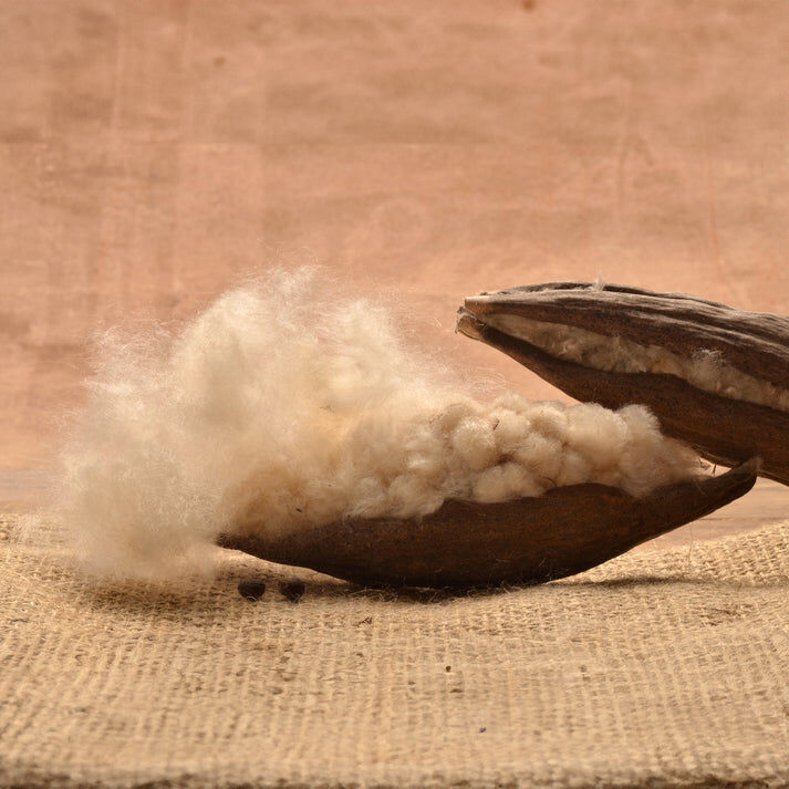 Almofada recheada com fibras naturais da árvore conhecida como "Kapok", leves, suaves e sustentáveis. Envolvida por uma capa de algodão, proporciona frescura e excelente respirabilidade.