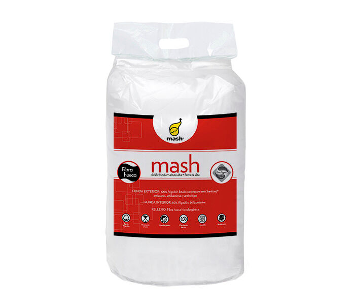 Descubra o conforto absoluto e diga adeus às alergias com a almofada MASH 90 cm. Graças à tecnologia anti-alérgica, pode desfrutar de um sono tranquilo sem se preocupar e incomodar com sintomas alérgicos. O tratamento Sanitized foi aplicado na capa exterior de modo a conferir uma higiene impecável. Esta almofada de firmeza média adapta-se perfeitamente à sua postura durante toda a noite. Durma como nunca com a almofada MASH!