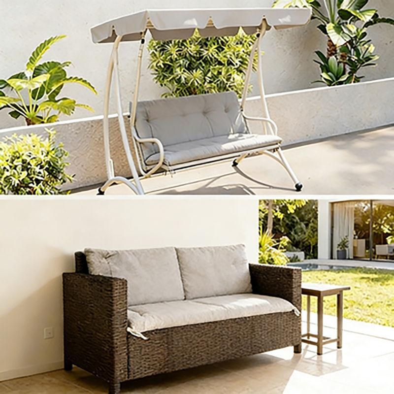 Sente o assento do banco ou baloiço a pressionar o corpo quando senta? Tem uma almofada muito antiga e já não é tão confortável como antes? Com esta almofada para banco da Outsunny não precisara de preocupar mais e podera desfrutar dos seus momentos de relaxamento ao ar livre com o máximo conforto. Não espere que o seu corpo sofra adotando uma má postura devido a sentar mal. Esta almofada exterior de design capitonê é a mistura perfeita de conforto e elegância para o seu banco! Características: - Uma largura de 150 cm permite que dois adultos se sentem confortavelmente ou que uma família de três pessoas se sente junta - Almofada elegante e confortável para bancos de 3 lugares ou baloiços - Composta por 2 seções diferenciadas, para o assento e o encosto - Almofada para exterior revestida com um agradável tecido de poliéster respirável - O seu design capitoné com botões proporciona maior densidade ao enchimento e um aspeto muito elegante - Almofada para banco de jardim com 6 tiras de fixação para evitar que voe com o vento ou escorregue ao sentar-se - Tenha em atenção que esta almofada não é removível nem lavável à máquina Especificaciones: - Cor: cinzento claro - Material: algodão PP e tecido 100% poliéster de 200 g/m² - Medidas totais: 150x98x8 cm (CxLxA) - Profundidade do assento: 49 cm - Altura do encosto: 49 cm - Referência: 84B-136V00LG O pacote inclui: - ● 1 x Almofada para banco de exterior