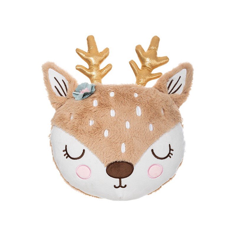 A nossa almofada Bambi é um dos nossos acessórios favoritos. Tem um desenho muito doce com a cara de um pequeno fulvo. Muito suave ao toque. Os chifres são concebidos na cor dourada e medem 12 cm. Tem um acabamento de alta qualidade. Os seus pequeninos vão adorar!