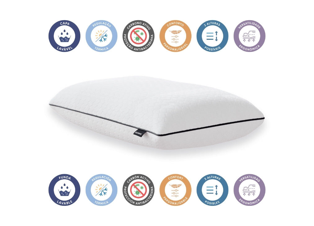- Adequada para diferentes perfis de utilizador: crianças, grávidas, seniores ou adultos que valorizam suporte e conforto cervical.