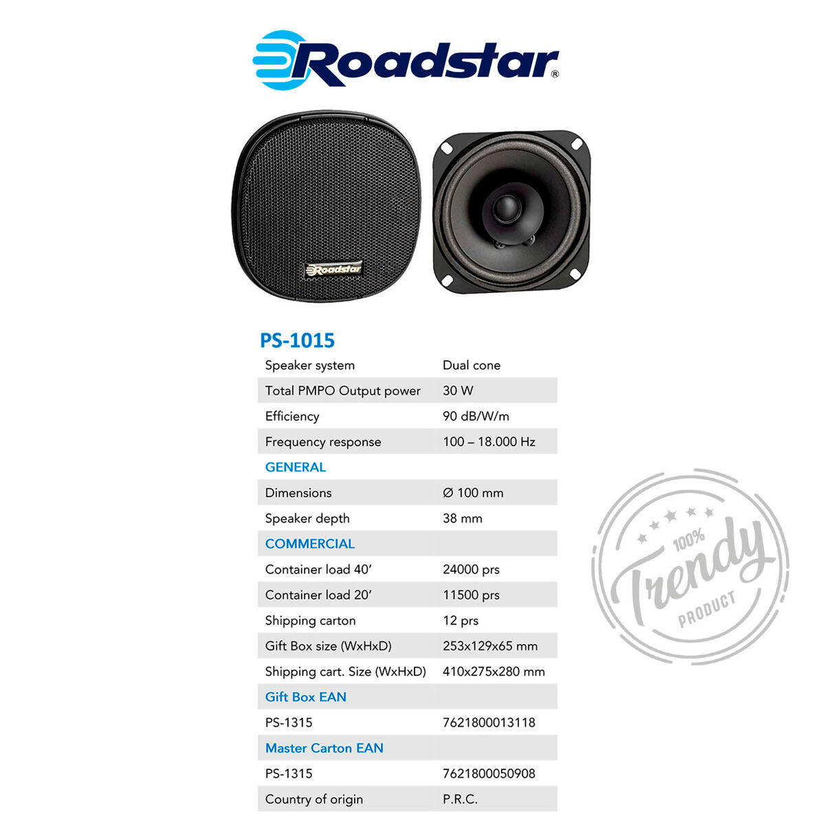 Os altifalantes de carro Roadstar permitem-lhe desfrutar da sua música preferida nas suas viagens de carro. Roadstar é sinónimo de qualidade quando se trata de artigos tecnológicos e está empenhado em oferecer produtos com os mais inovadores conceitos de engenharia e design.