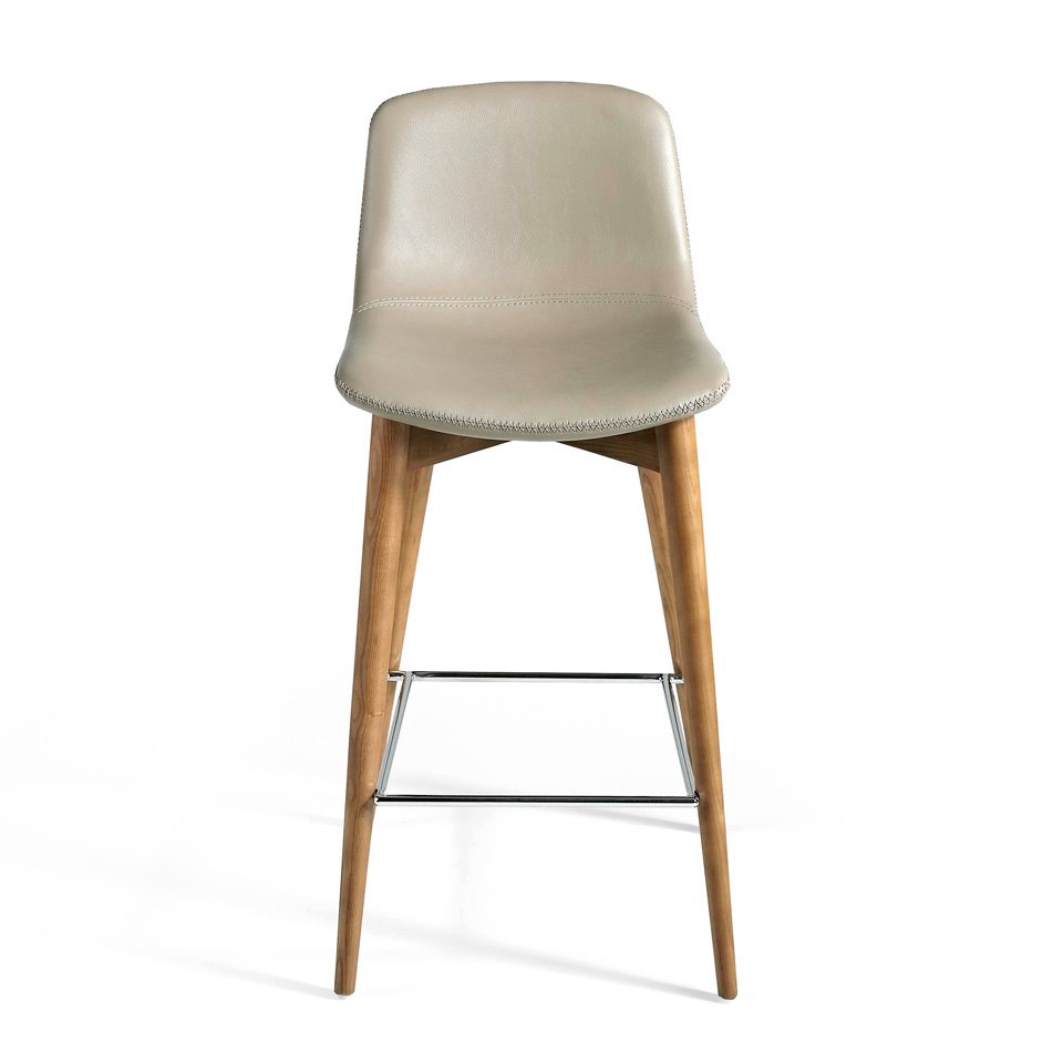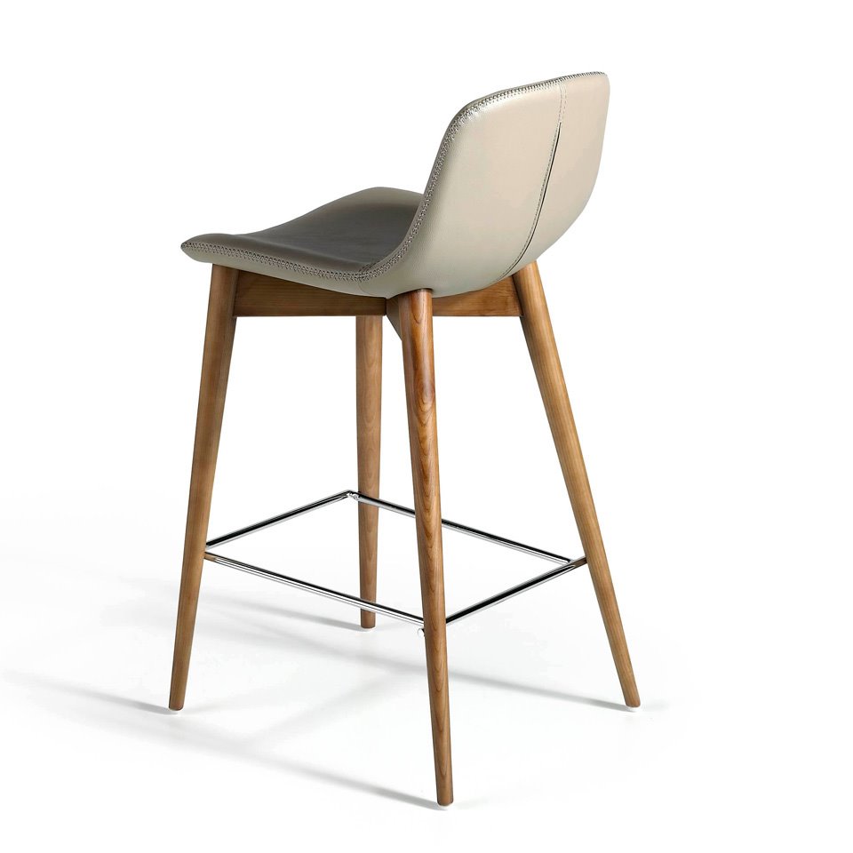 Banco de design moderno com assento e encosto estofados em pele de vison. Tanto os seus pormenores em aço inoxidável cromado como as suas pernas em madeira de nogueira, num estilo vanguardista mas intemporal, farão com que seja um elemento indispensável na sua cozinha ou sala de jantar. Este banco de Angel Cerdá combina o estilo único e pessoal da marca, bem como o maior conforto e estabilidade, graças à elevada qualidade do seu estofo e à estrutura original das suas pernas.