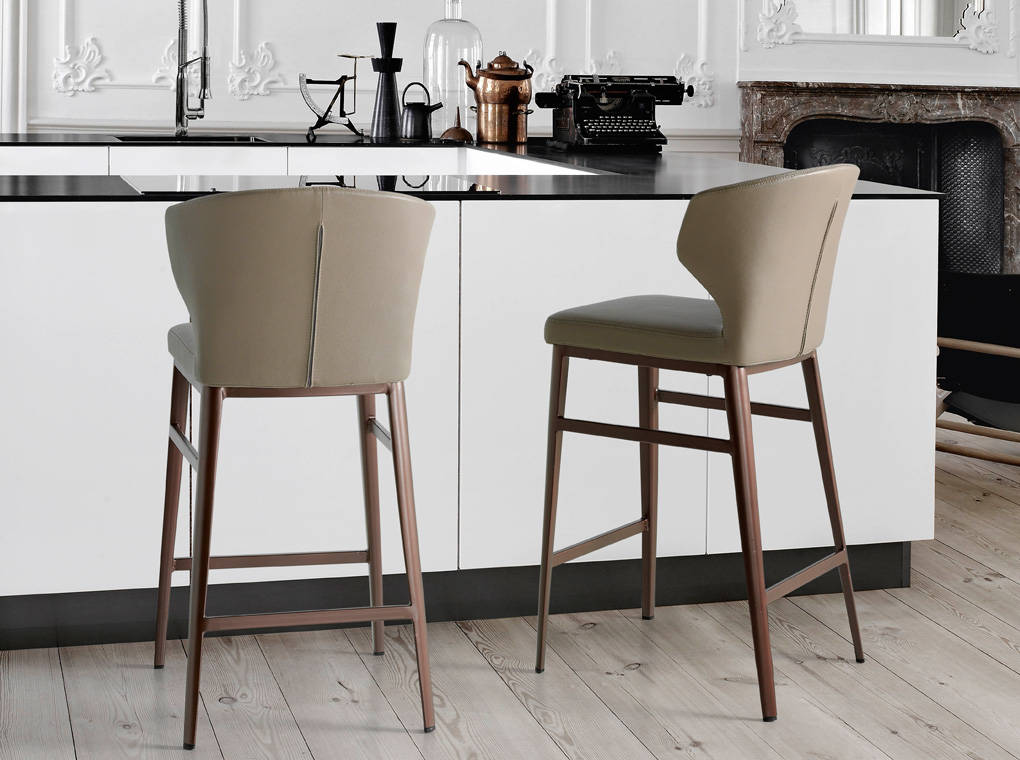 - A combinação do estofo em pele e do aço das pernas faz com que seja o banco perfeito para dar modernidade e luminosidade ao espaço.