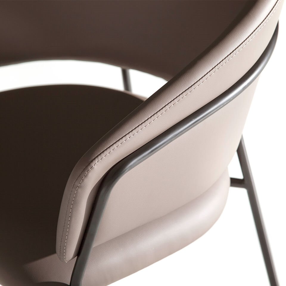 Cadeira com braços de design moderno com assento e encosto estofados em pele de marta escura. As suas pernas em aço inoxidável preto com um estilo vanguardista, mas intemporal, farão dela uma peça indispensável para a sua cozinha ou sala de jantar. Esta cadeira de Angel Cerdá combina o estilo único e pessoal da marca, bem como o maior conforto e estabilidade, graças à elevada qualidade dos seus estofos e à estrutura original das suas pernas.