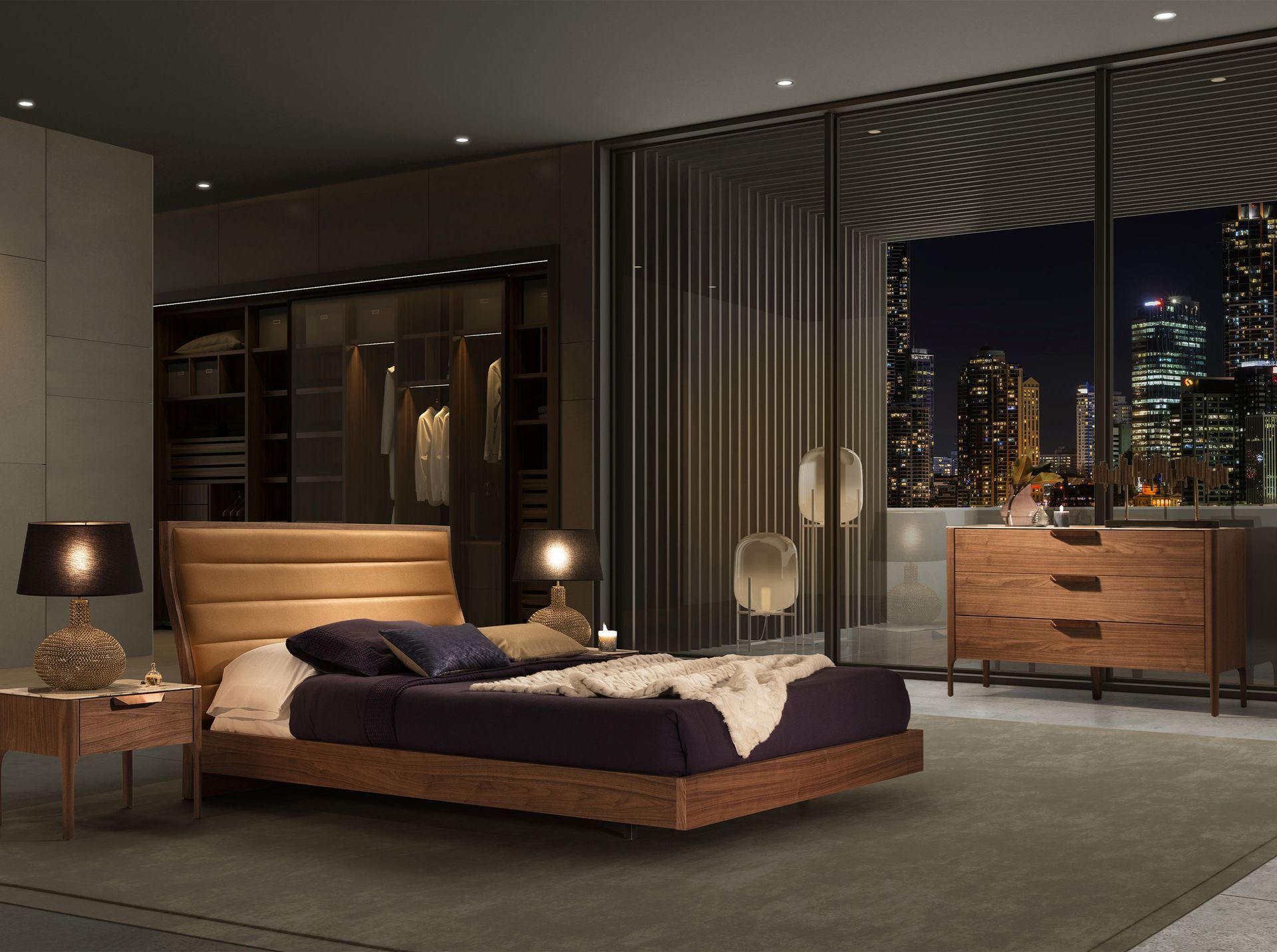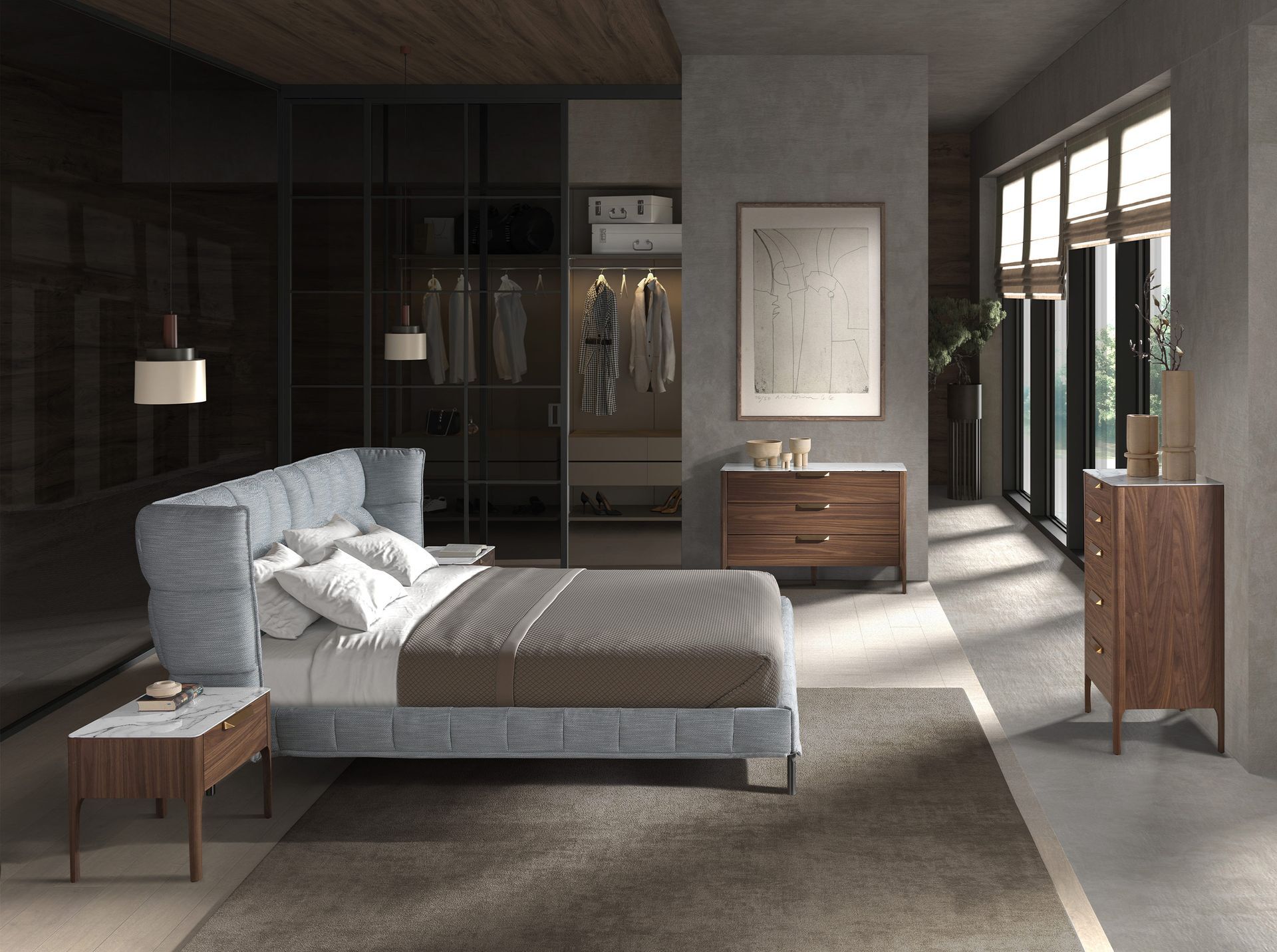 - Uma cómoda elegante e sofisticada em folha de nogueira natural com 0,5 mm de espessura que dará um toque de modernidade e calor ao seu quarto.