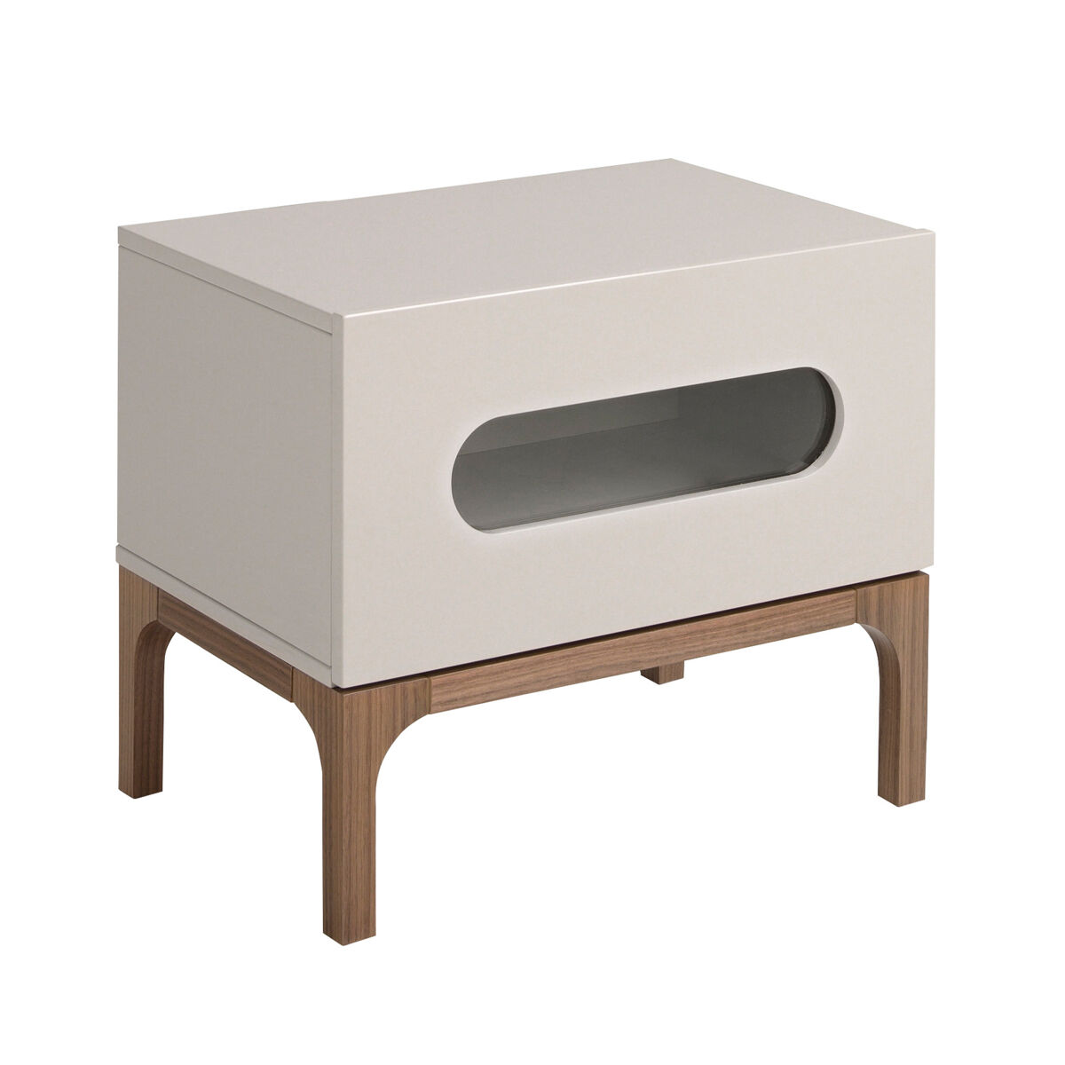 - Tanto o acabamento lacado como o design linear e moderno fazem desta mesa de cabeceira a peça perfeita para o seu quarto.
