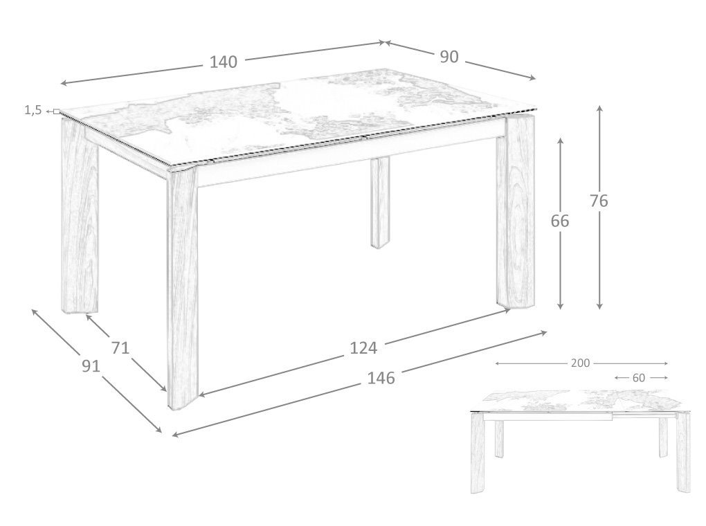 Esta mesa de jantar apresenta 1 extensível de 60 cm., e pode ser alargada por 140 a 200 cm.