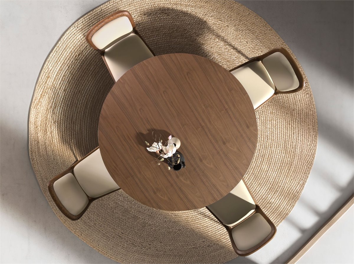 Mesa de jantar redonda em nogueira e aço areia metalizado modelo 1163 Angel Cerdá S.L.