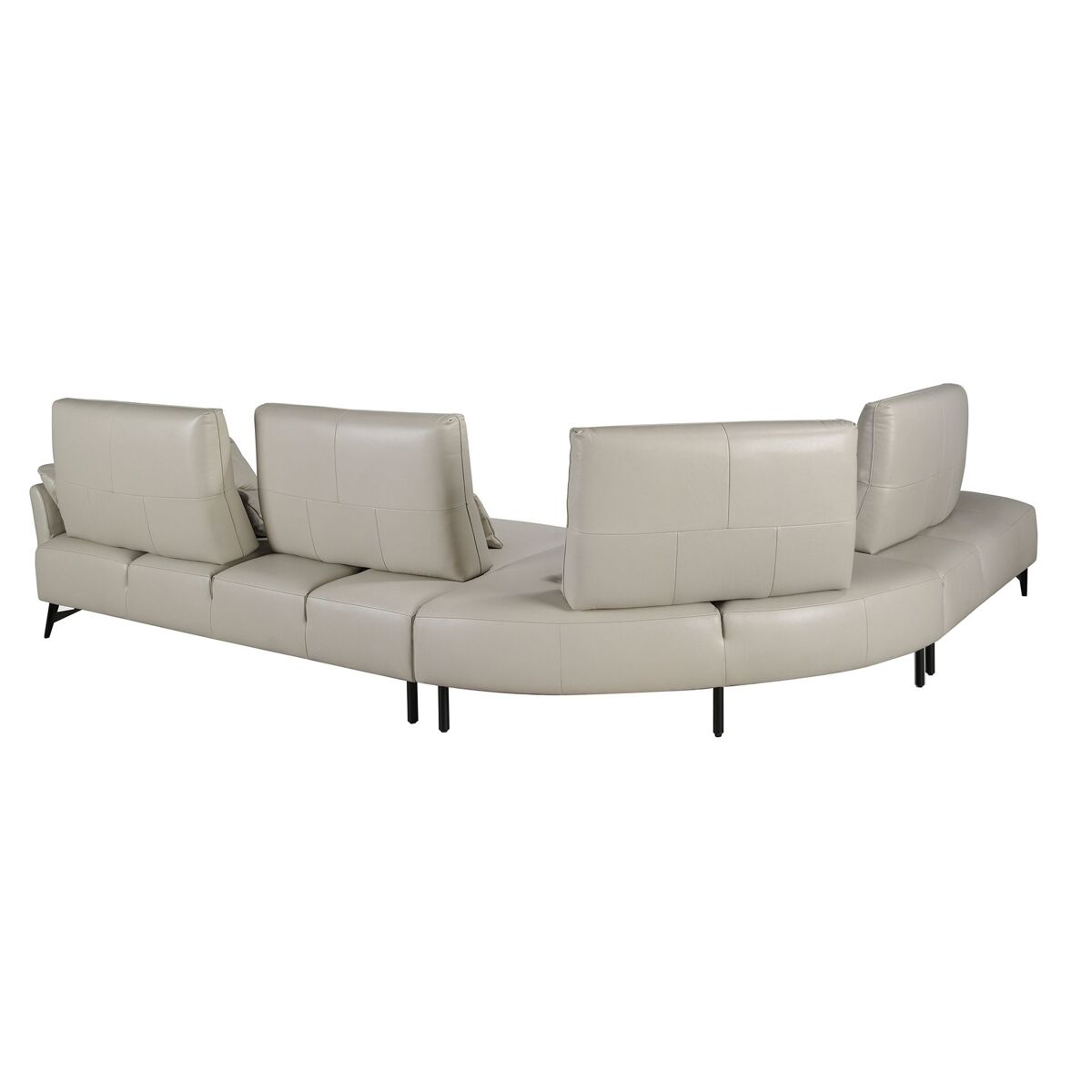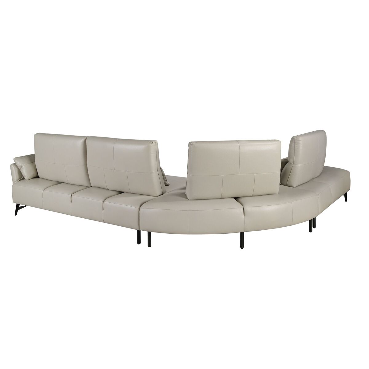 Sofá chaise longue esquerdo de 5 lugares com um design moderno, estofado em pele de vaca cor de areia. Tanto pelo seu estilo como pelas suas pernas pretas em aço inoxidável, este sofá dará o toque de vanguarda e elegância que procura na sua casa.