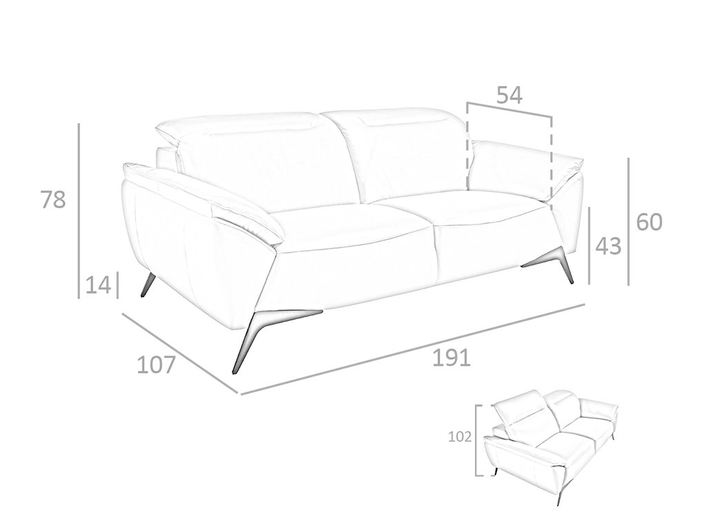 Sofá de 2 lugares estofado em pele Cinza Taupe modelo 6131 Angel Cerdá S.L. Sofá de 2 lugares de design moderno estofado em pele de origem bovina de 1,25 mm de espessura na cor Cinza Taupe com apoios de cabeça articulados independentes para um maior conforto. Um sofá de estilo vanguardista e moderno, com uma estrutura interna robusta de madeira de pinho natural e pernas de aço inoxidável preto, que lhe dá aquele toque de sofisticação e elegância que procura para a sua sala de estar. O assento e o encosto em espuma de poliuretano com densidade de 25 kg/m3 dão-lhe o conforto extra de que necessita para relaxar. A combinação perfeita de modernidade, conforto e design. ESTILO: Este original sofá de 2 lugares, estofado em pele de vaca cinzenta Taupe da mais alta qualidade, dará o toque original e elegante que procura para a sua casa, fiel às últimas tendências em decoração. MULTIUSO: Versátil e funcional, o seu design permite-lhe adaptar-se a qualquer tipo de sala de estar ou de jantar, tornando-se o principal protagonista da divisão. QUALIDADE: Todos os nossos produtos são fabricados com materiais da mais alta qualidade, garantindo um mobiliário duradouro e funcional. DECORAÇÃO: O seu design original, feito com materiais nobres como a pele de vaca e o aço preto nas pernas, fazem dele um sofá perfeito com o qual conseguirá o toque diferente e distinto que procura para a sua sala de estar, sala de estar ou sala de jantar. DIMENSÕES E CONFORTO: O tamanho dos seus assentos e o seu estofo em espuma de poliuretano de 25 kg/m3 de densidade, bem como os seus apoios de cabeça articulados independentes, permitir-lhe-ão ter o máximo conforto. CARACTERÍSTICAS: Os seus apoios de braços almofadados e os apoios de cabeça articulados proporcionam uma maior sensação de conforto. Pode completar o design da sua sala com o conjunto de sofás de 3 lugares.