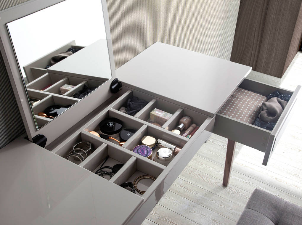- Este toucador funcional com espelho rebatível e caixa para jóias tem um acabamento ideal para criar uma atmosfera única e exclusiva no seu quarto ou quarto de vestir.