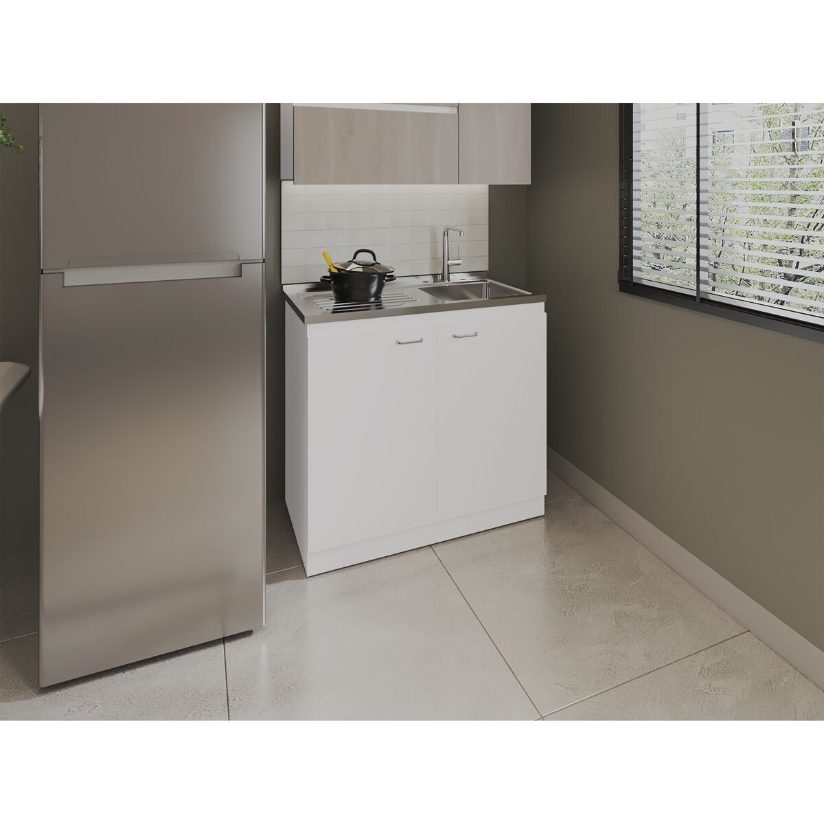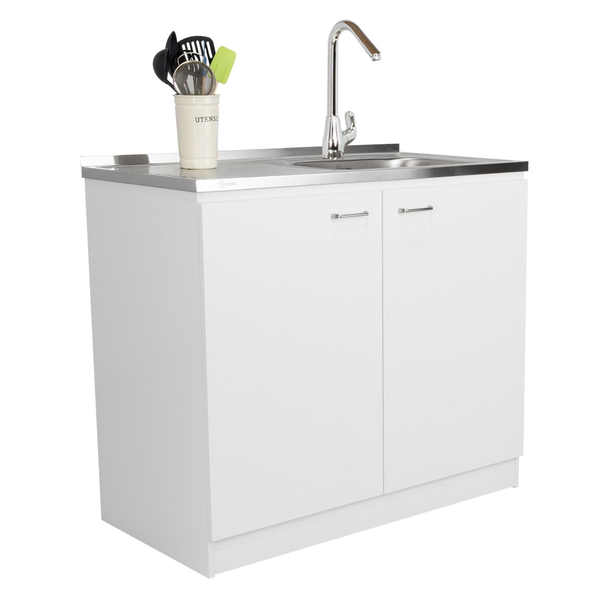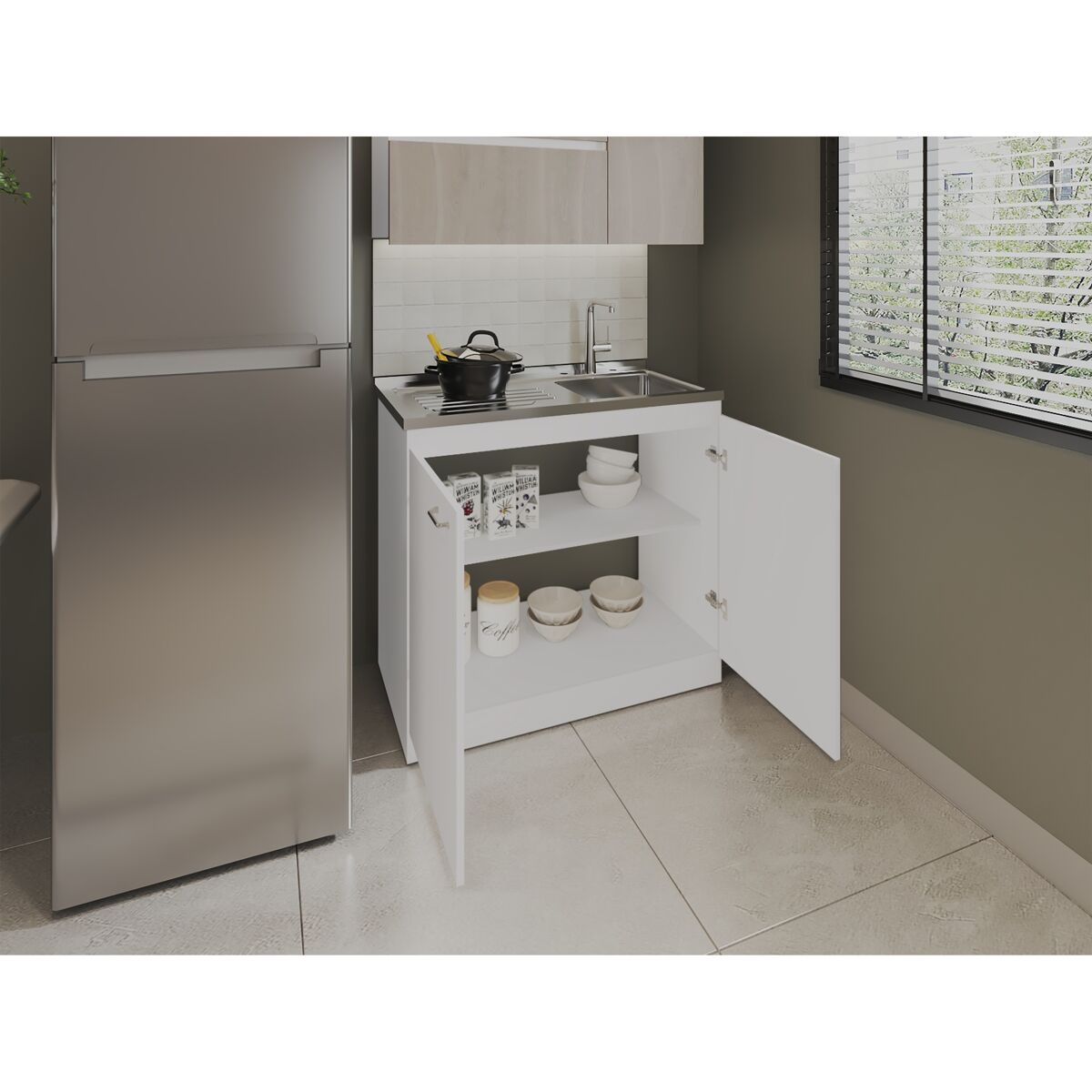 Dispõe de um módulo inferior com portas que facilita a arrumação de produtos de limpeza, utensílios ou artigos de uso frequente, mantendo-os protegidos e fora da vista. A sua superfície superior foi projetada para o uso diário, promovendo uma utilização prática e organizada. Fabricado em madera aglomerada MDP y melamina de alta resistencia, oferece estabilidade, durabilidade e fácil manutenção, sendo uma escolha segura para quem valoriza móveis funcionais e duradouros.