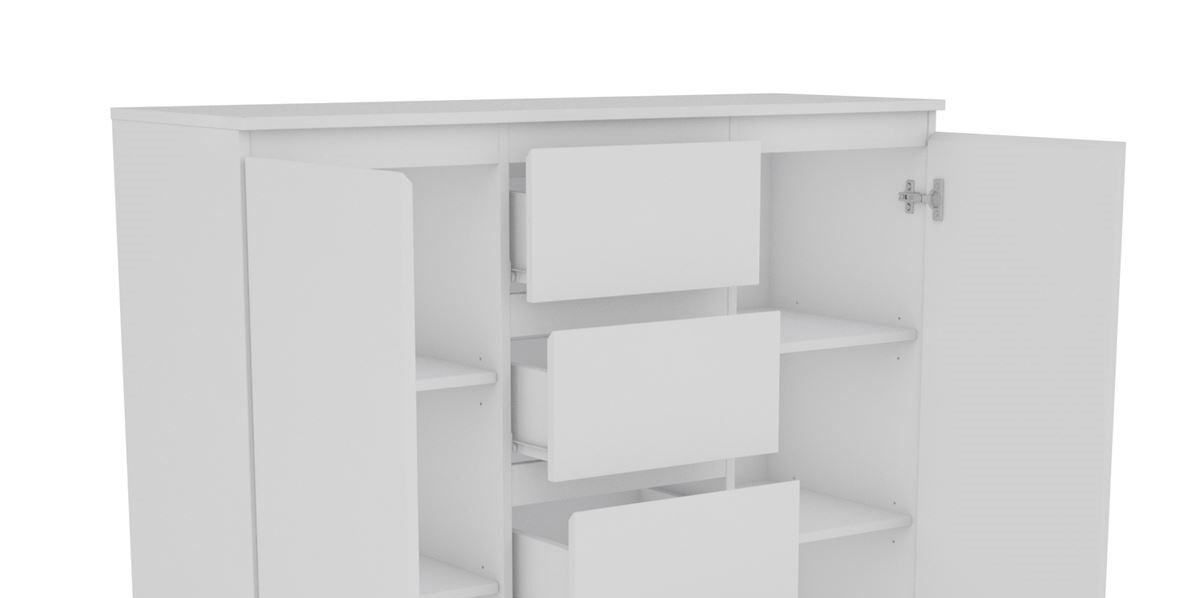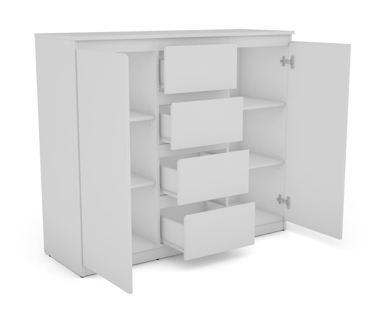 Um aparador é uma boa maneira de colocar um pouco de ordem na sua sala de estar: comprar este aparador OSLO também é uma forma de dar à sua casa um toque moderno de design. A sua estrutura versátil, dividida em vários espaços com 4 gavetas e 2 portas e acabamento branco, permitirá aproveitar a sua ampla capacidade interior como realmente prefere: armazenar no interior, por exemplo, talheres, louças ou roupa de mesa, e preparar a mesa em um minuto.