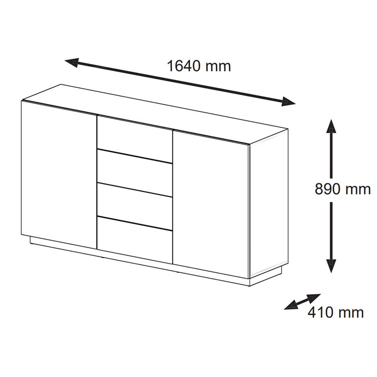 Aparador Aurus em madeira e preto com 2 portas e 4 gavetas