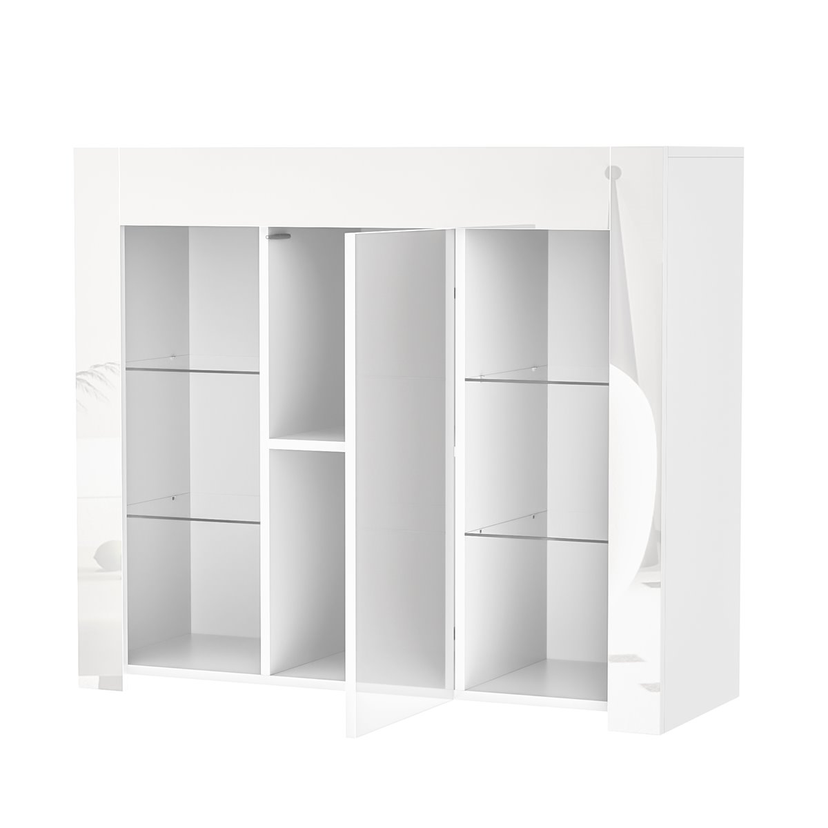 DESIGN ELEGANTE: Buffet moderno com frente brilhante e acabamento mate para um aspeto geral luxuoso e harmonioso.