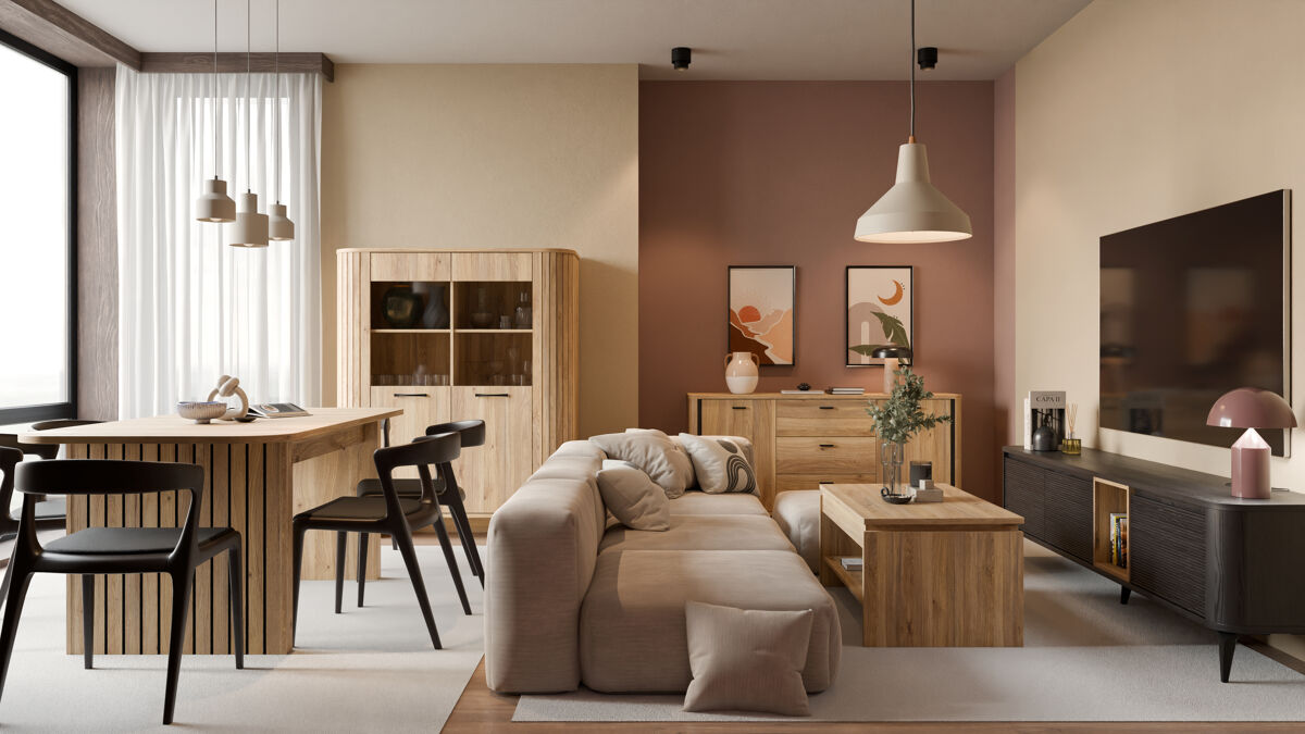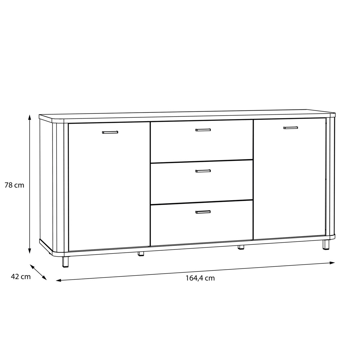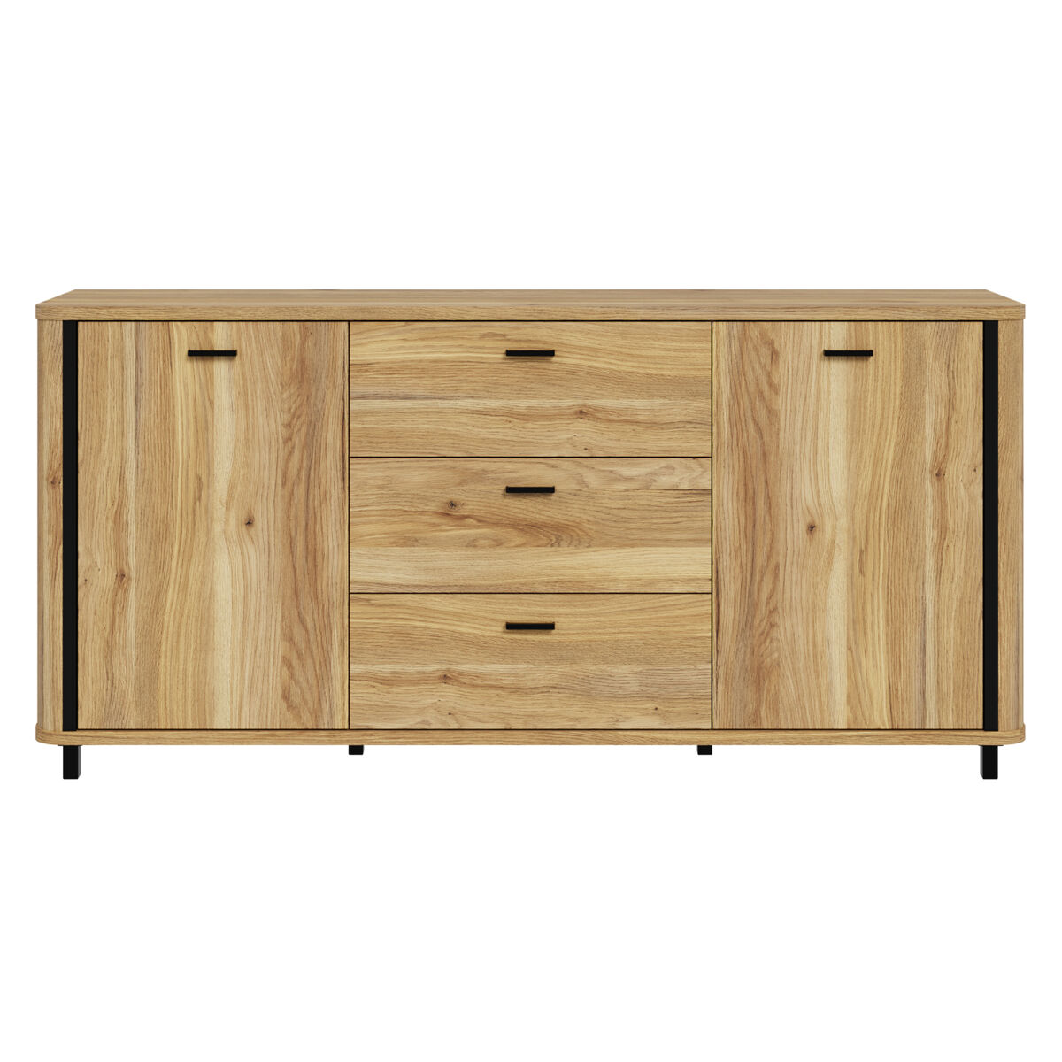 O aparador HARMONIA combina design moderno e funcionalidade, oferecendo 2 portas e 3 gavetas com sistema de fecho suave. As gavetas abrem completamente para facilitar o acesso. A estrutura, em painel de partículas cor carvalho, proporciona resistência e durabilidade, complementada por puxadores pretos foscos, que conferem um acabamento elegante e contemporâneo. Ideal para manter a sala de estar, sala de jantar ou hall de entrada bem-organizados, une estilo e utilidade na mesma peça de mobiliário.