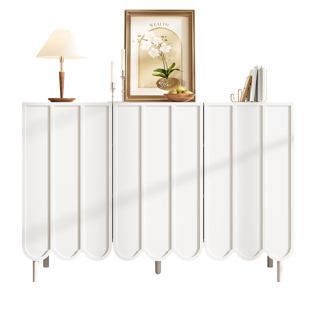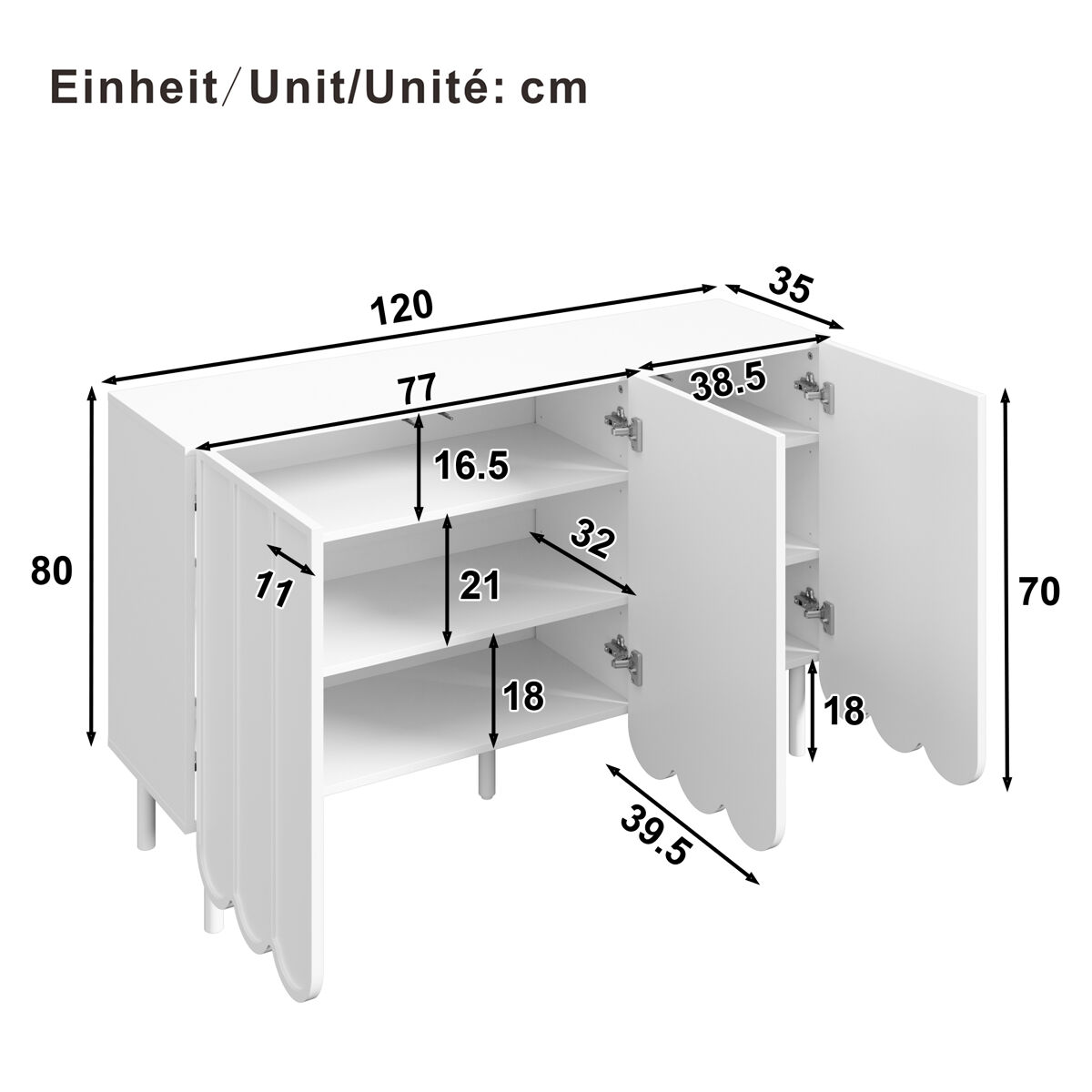 DESIGN E ESTILO MODERNOS – Portas em forma de onda e um sistema de ressalto sem puxadores conferem a este aparador em madeira um aspeto minimalista e elegante, perfeito para ambientes modernos.