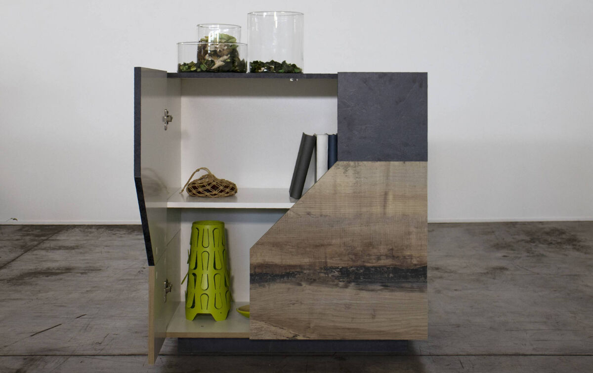 ARMÁRIO DKOUD - Aparador de cozinha com 2 portas, Aparador para sala, 100% Fabricado na Itália, cm 100x43h106, Ardósia e Bordo.
