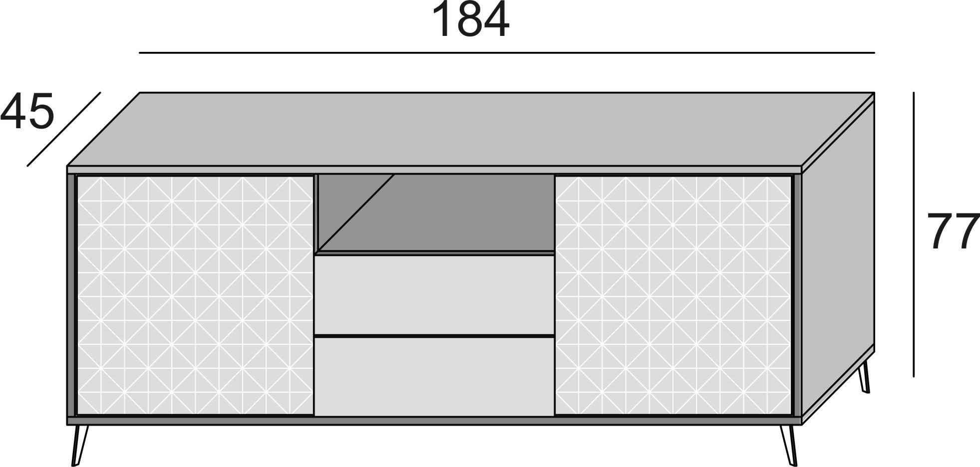 DDIGES BUFFET - Móvel buffet com 2 portas e 2 gavetas, Aparador elegante para sala, móvel TV, 100% Fabricado na Itália, Cm 184x45h77, Branco e Concreto.