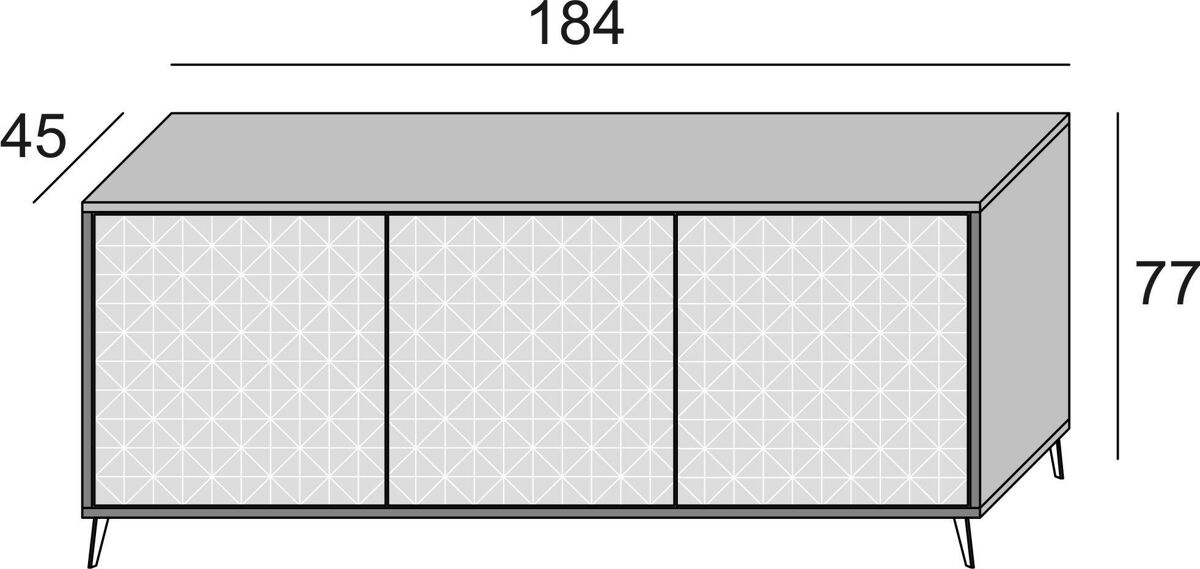CARACTERÍSTICAS TÉCNICAS - Construído inteiramente em painel melamínico E1 termoestruturado, pés metálicos, resiste a impactos e arranhões e tem durabilidade ao longo do tempo - Limpeza fácil e rápida graças ao material de que é feito - Entregue desmontado com kit e livreto de instruções de montagem - Cuidados e atenção especial à embalagem, resistente e adequada ao transporte - Madeira certificada FSC, a espessura de 18 mm garante alta resistência dos materiais, alto desempenho estético graças ao acabamento de alta definição - Dimensões em cm - 184x45x77