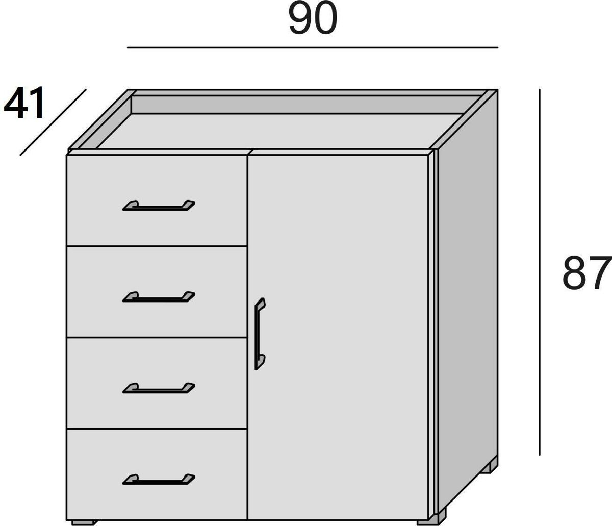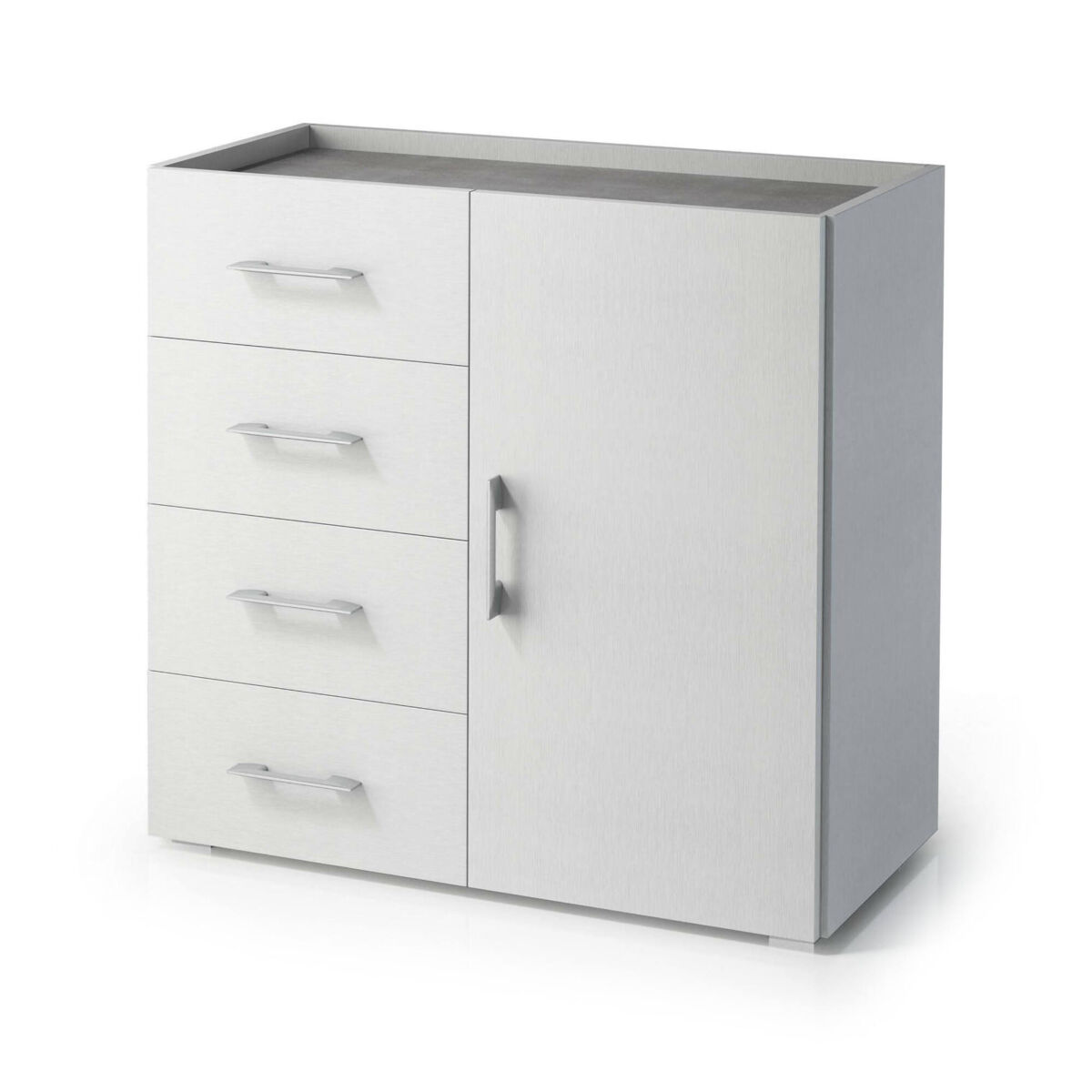 BUFFET DNAG - Móvel Buffet com 1 porta e 4 gavetas, Aparador de sala, Armário multiuso com prateleiras, 100% Fabricado na Itália, Cm 90x41h87, Branco e Concreto.
